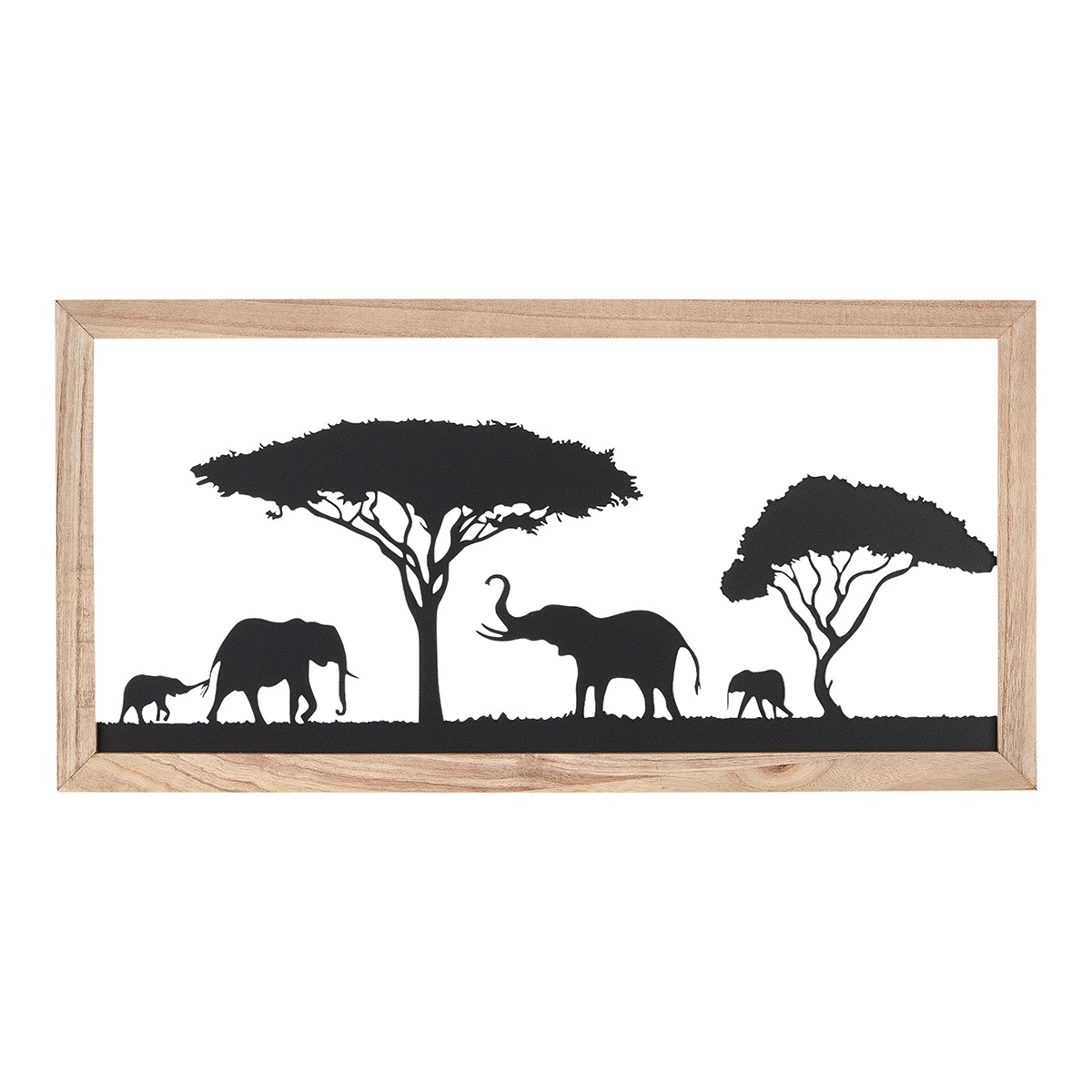 Ανάγλυφο τοίχου Ορθογώνιο Μοτίβο Ελέφαντα Μεταλλικό Μαύρο 30X1X60Cm 30X1X60Cm