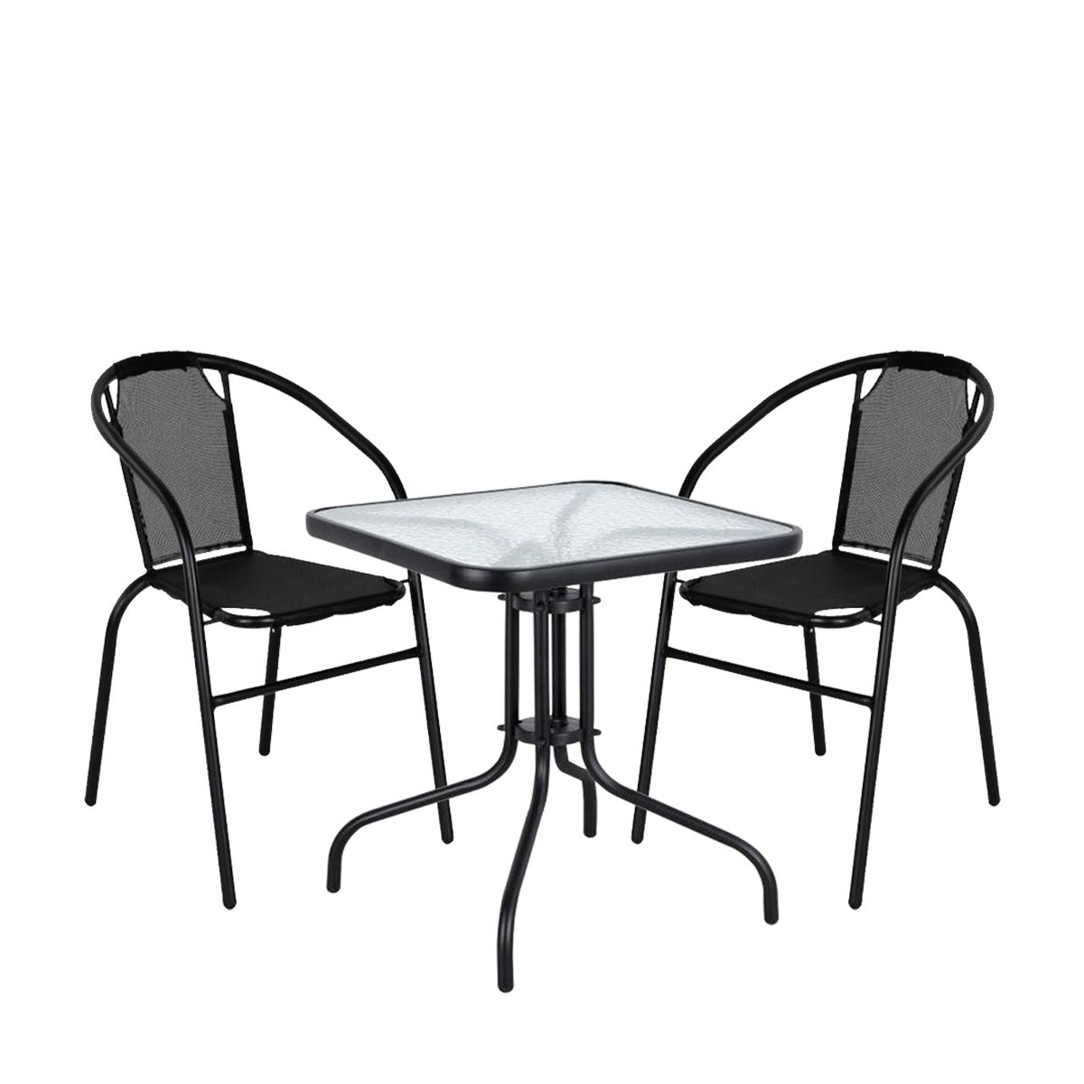 Σετ Τραπεζαρία Κήπου Mars Μέταλλο Μαύρο/Γκρι Με 2 Πολυθρόνες