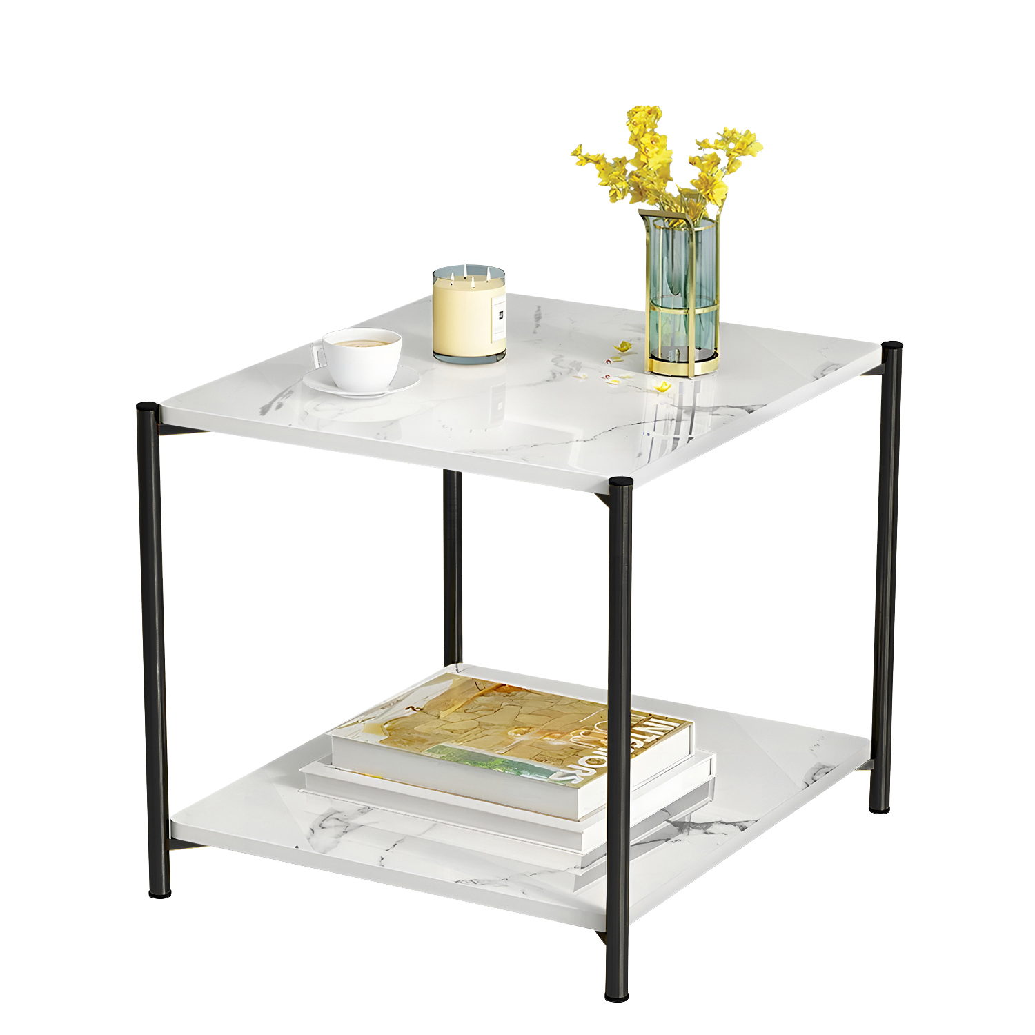 Τραπεζάκι Σαλονιού ArteLibre ARGUN Λευκό Με Όψη Μαρμάρου MDF/Μέταλλο 40x40x43cm