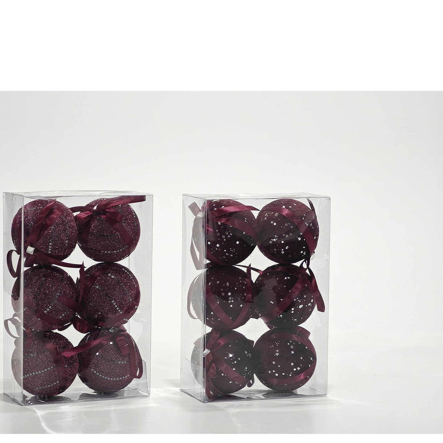 Δώστε μια πολυτελή αίσθηση στο χριστουγεννιάτικο δέντρο σας με αυτό το σετ από 6 μπορντό μπάλες. Με διάμετρο 80mm και διαθέσιμες σε 2 διαφορετικά σχέδια, αυτές οι μπάλες είναι ιδανικές για να προσθέσουν μια κομψή και διαχρονική νότα στη διακόσμησή σας. Τοποθετήστε τις στο δέντρο σας για να ενισχύσετε τη γιορτινή ατμόσφαιρα.