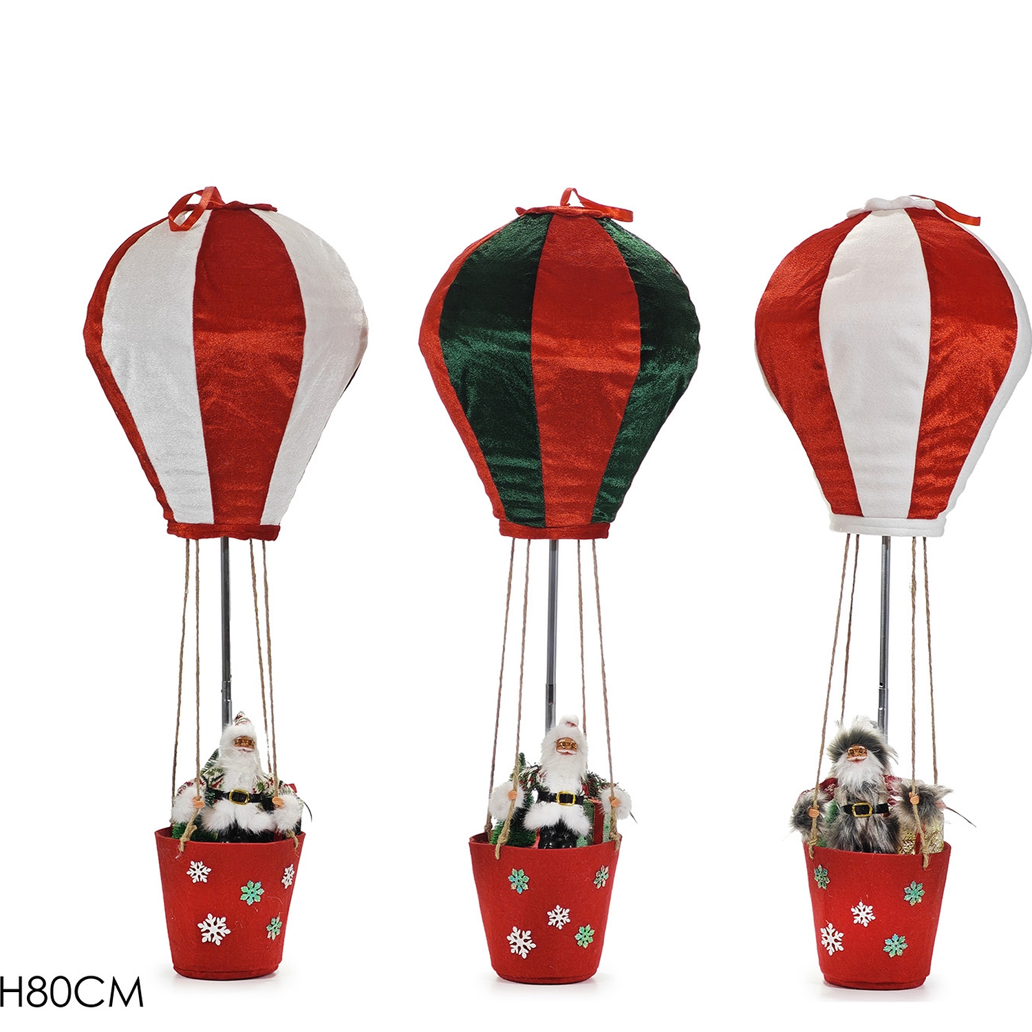 Προσθέστε μια μαγευτική και εορταστική αίσθηση στο σπίτι σας με αυτές τις φιγούρες του Άγιου Βασίλη σε αερόστατο. Με ύψος 80cm, είναι διαθέσιμο σε τρία διαφορετικά σχέδια, τοποθετημένα σε διακοσμητικά αερόστατα. Ιδανικές για να διακοσμήσουν το σπίτι σας και να προσθέσουν μια παιχνιδιάρικη πινελιά στις γιορτές.