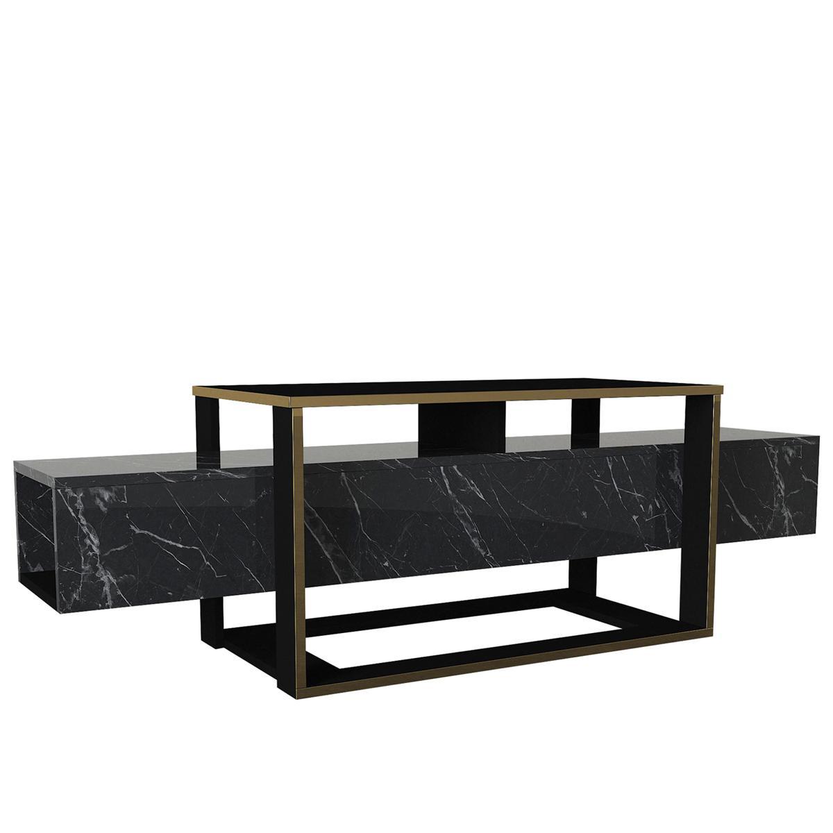 Έπιπλο τηλεόρασης LEVITHA σε χρώμα μαύρο μάρμαρο, 160x50x46cm