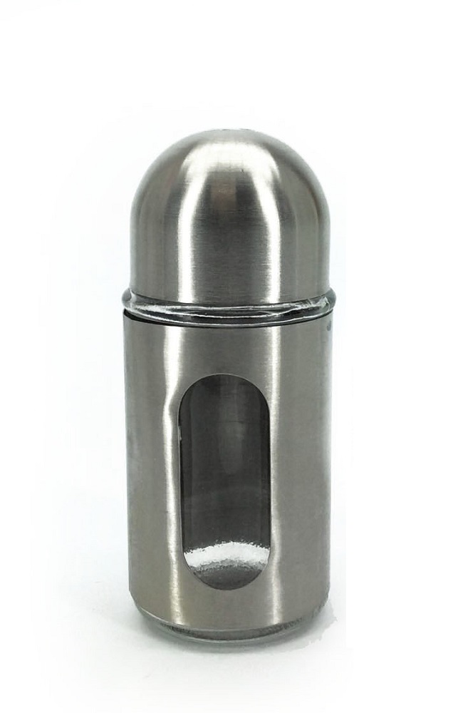 Αλατιέρα με οθόνη ένδειξης στάθμης inox/διάφανο μέταλλο/γυαλί 100ml Υ10cm.