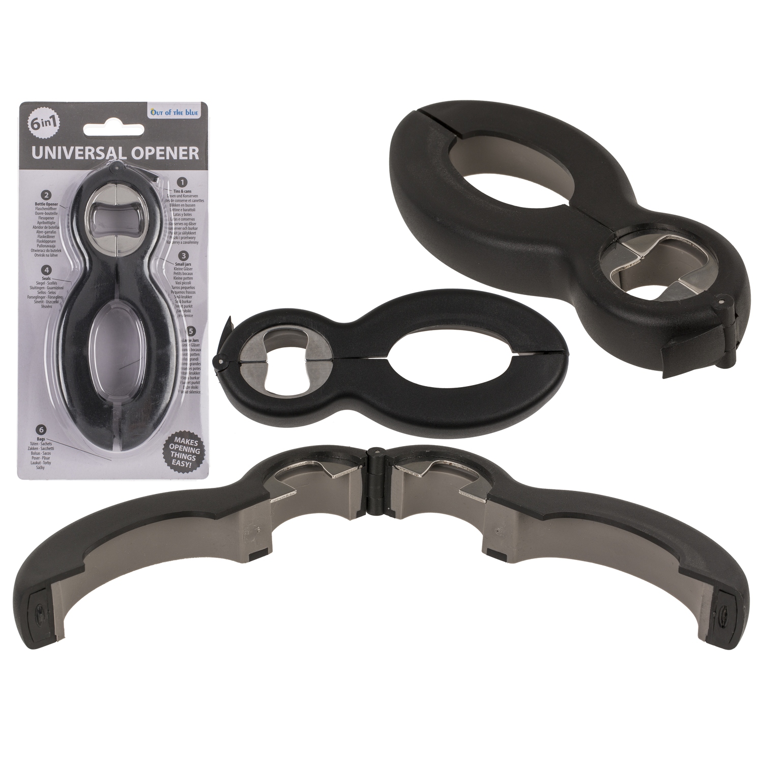 Ανοιχτήρι universal 6 σε 1 μαύρο/γκρι μέταλλο/πλαστικό 14.5x6cm.