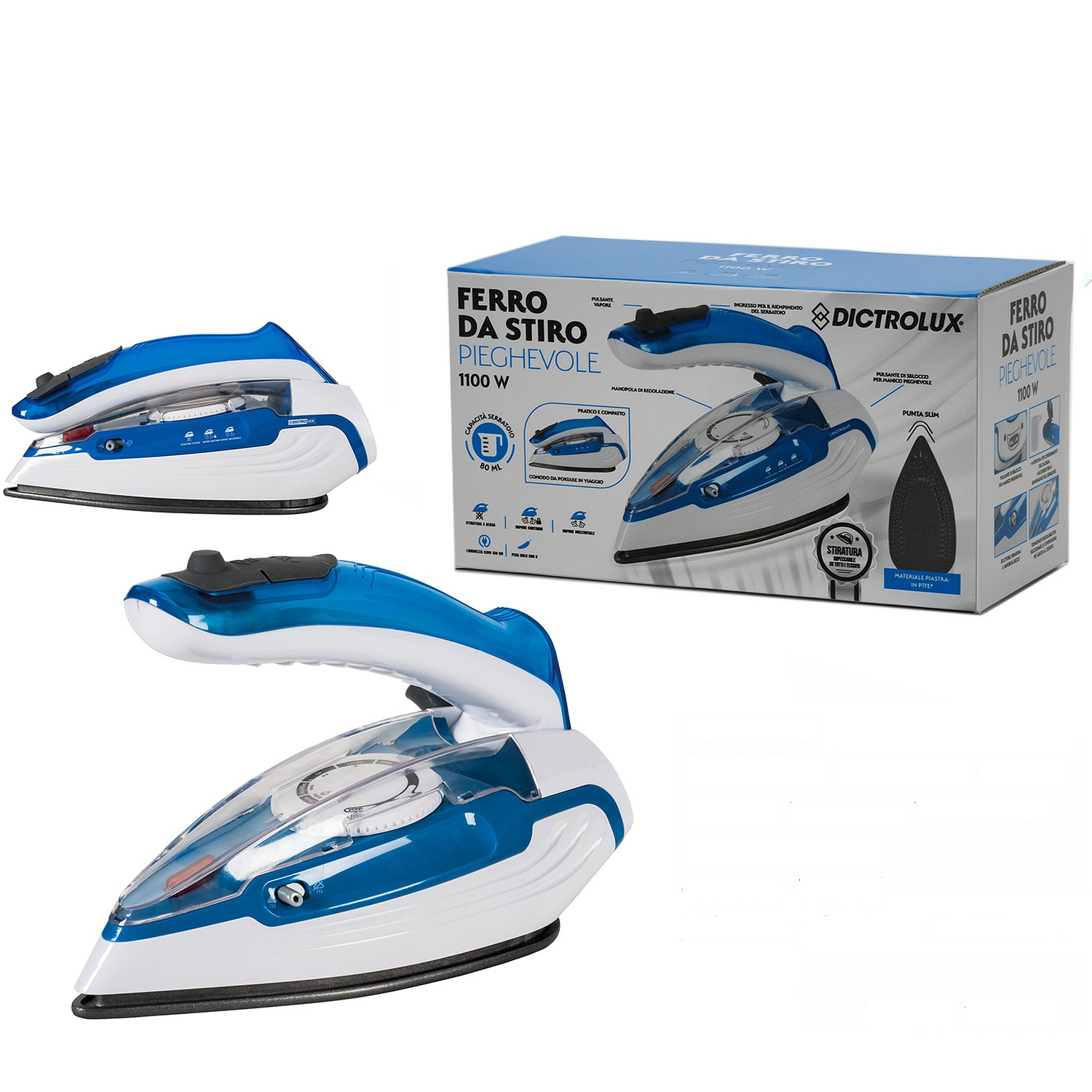 Αναδιπλούμενο ατμοσίδερο με ισχύ 1100W και αντικολλητική επιφάνεια τεφλόν. Διαθέτει λειτουργίες στεγνού, ατμού και ψεκασμού, καθώς και αυτόματο καθάρισμα.