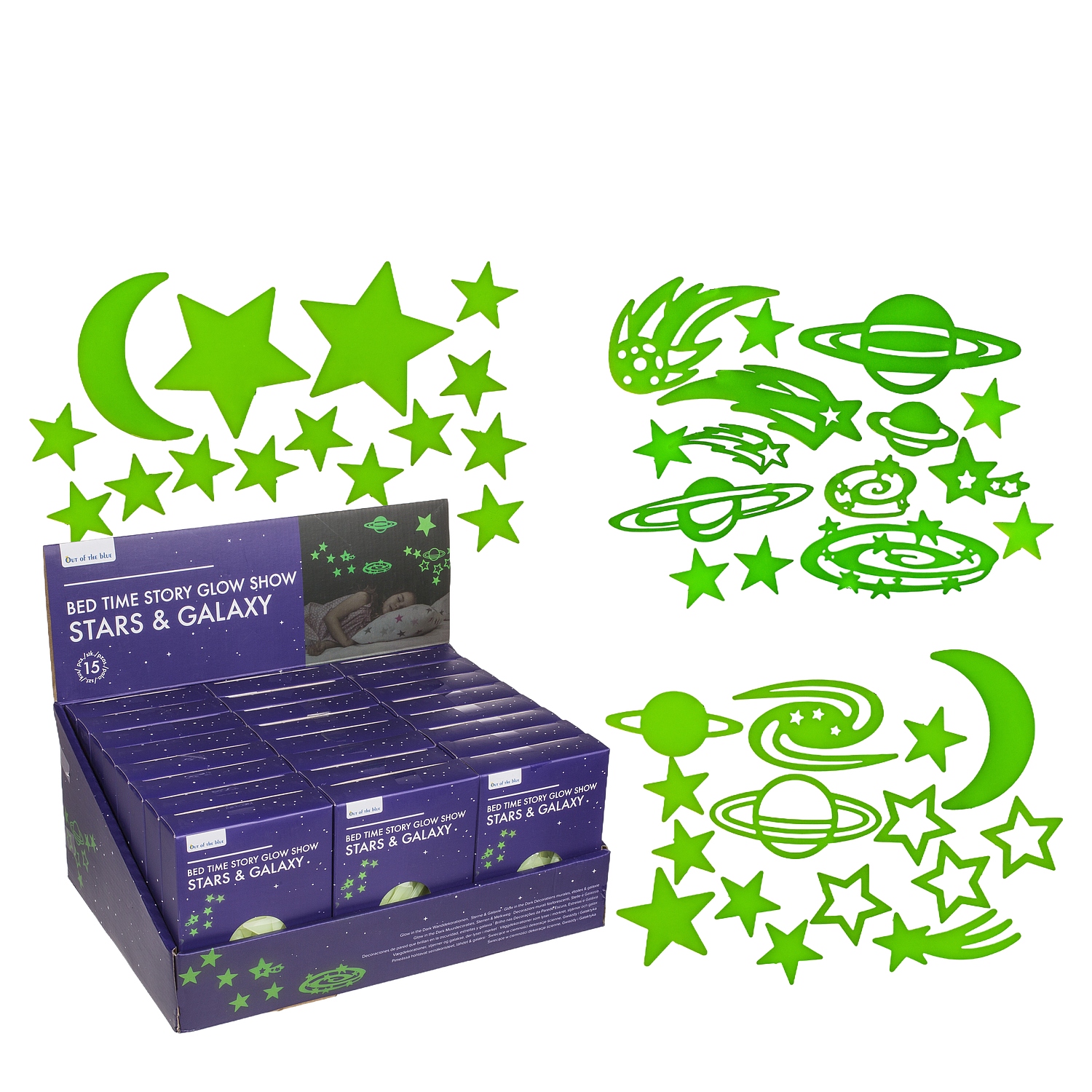 Αυτοκόλλητα τοίχου που φωσφορίζουν αστέρια και πλανήτες σετ 15τμχ σε 3 σχέδια