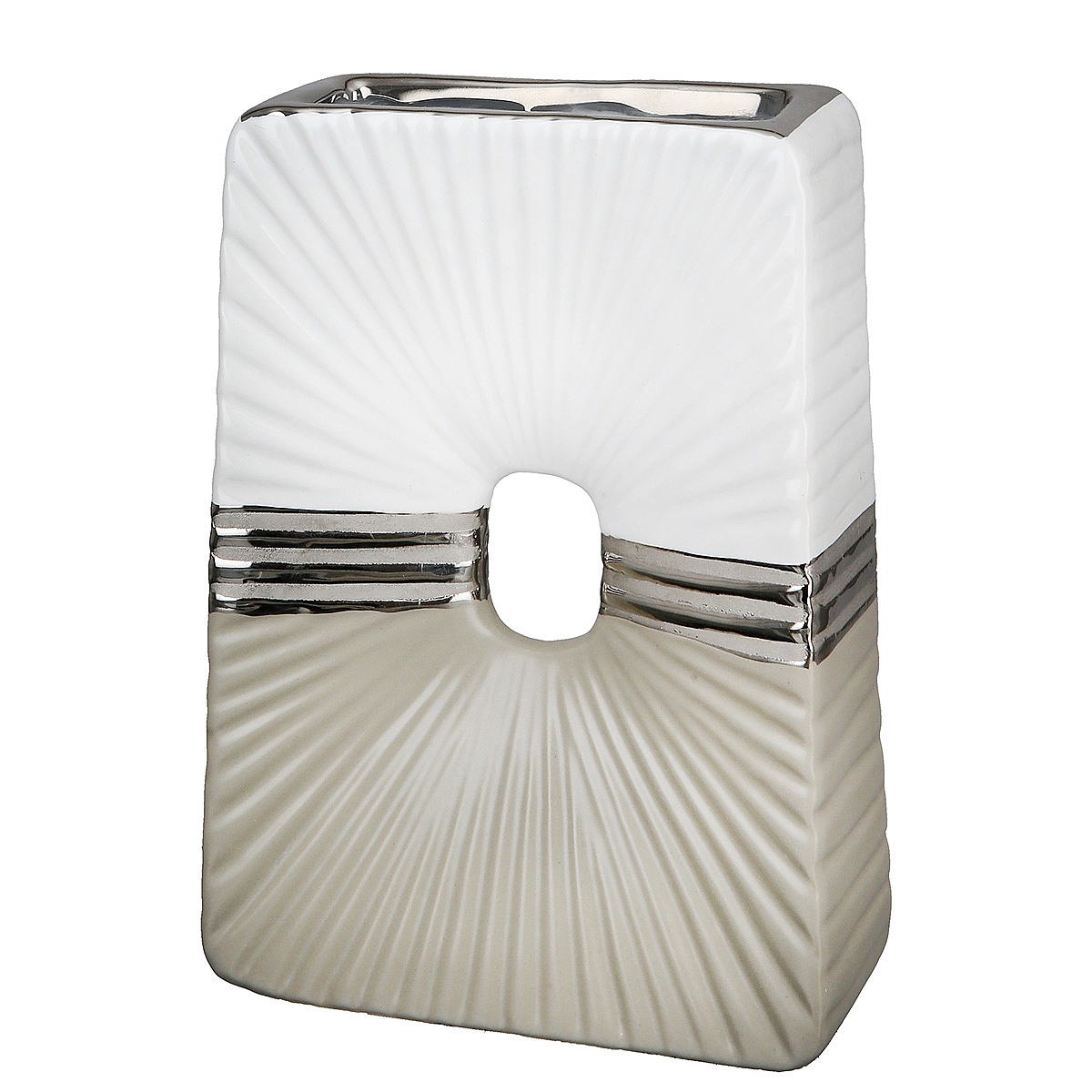 Βάζο μπεζ/ασημί/λευκό κεραμικό 6×14.5x20cm.