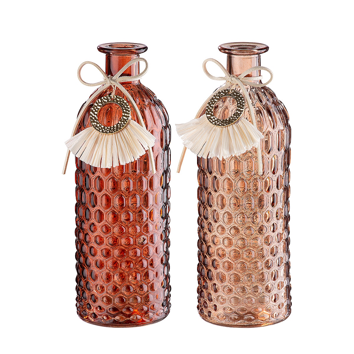 Βάζο μπουκάλι γυαλί 8.5×8.5x25cm σε 2 χρώματα.