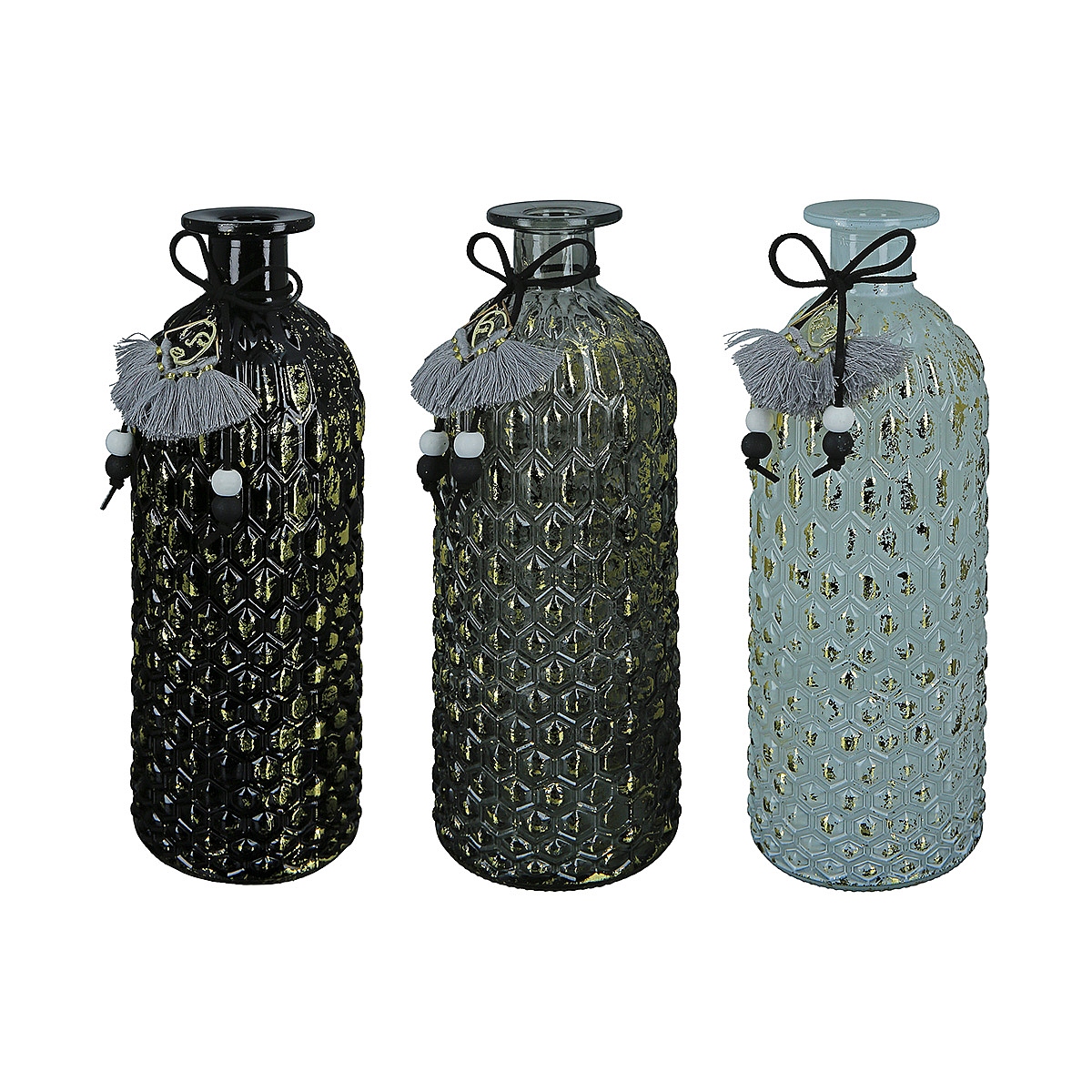 Βάζο μπουκάλι γυαλί 8.5×8.5x25cm σε 3 χρώματα.