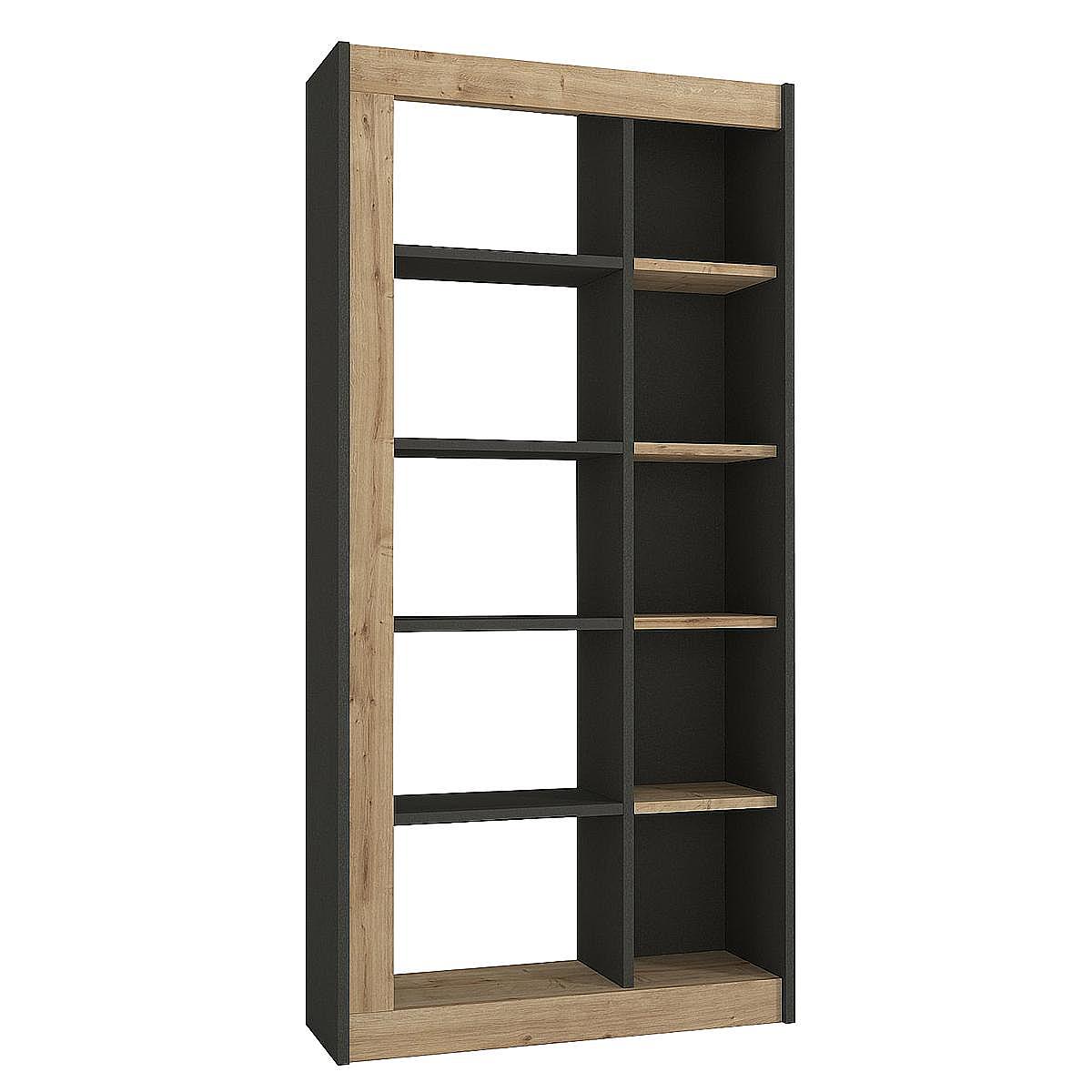 - Διαθέτει δέκα ράφια -πέντε σε κάθε πλευρά- για την ευρύχωρη οργάνωση και αποθήκευσης των βιβλίων και άλλων αντικειμένων