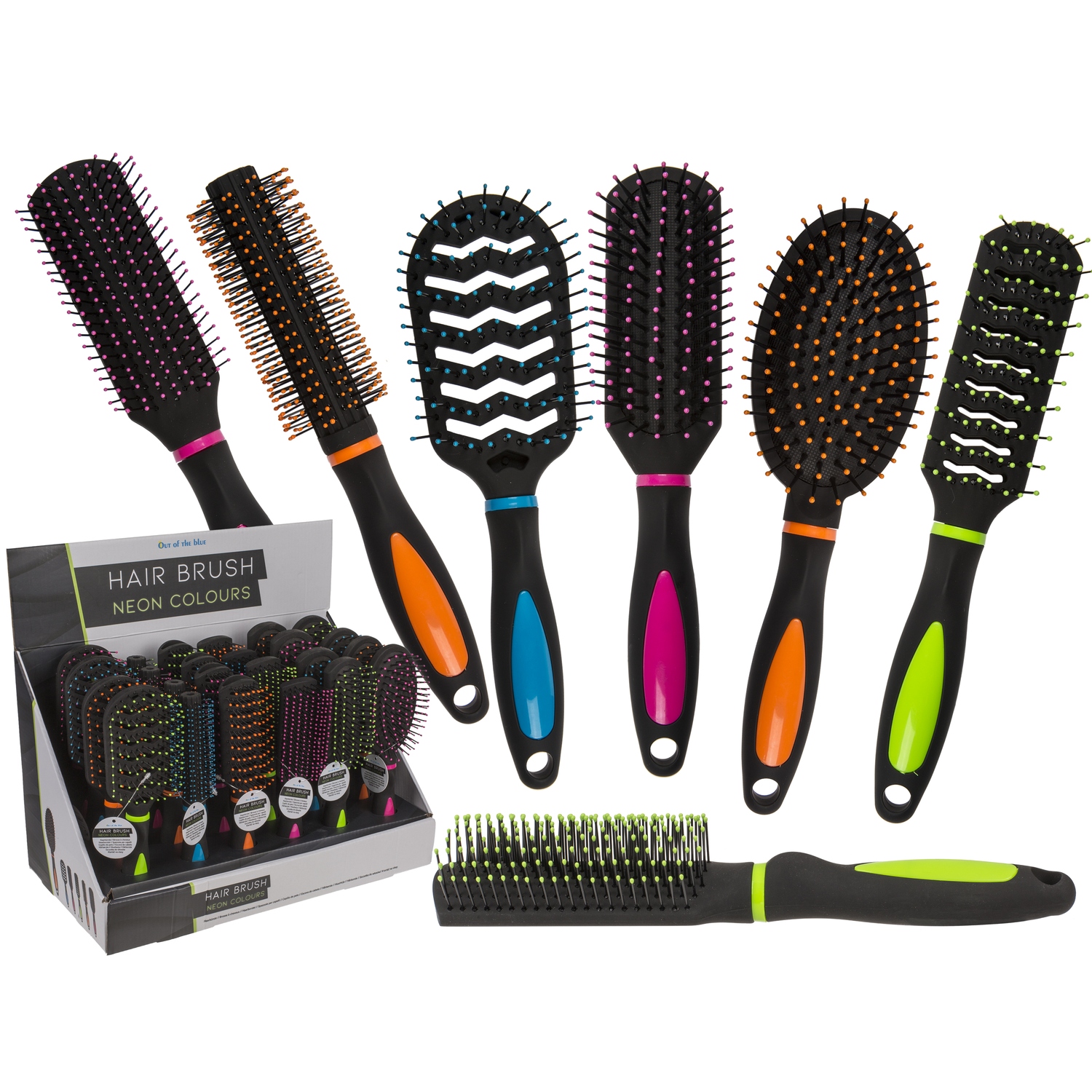 Βούρτσα μαλλιών neon πλαστικό 23cm σε 6 σχέδια/4 χρώματα.