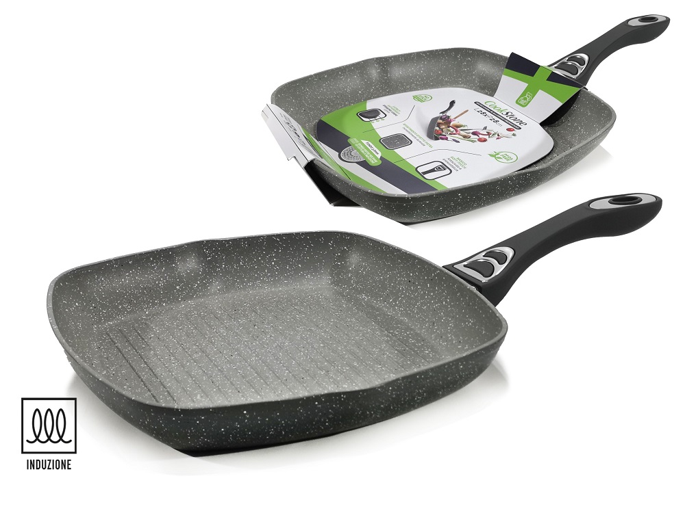 Γκριλιέρα αντικολλητική αλουμινίου με επίστρωση Stone λαβή Soft-Touch 28x28cm.
