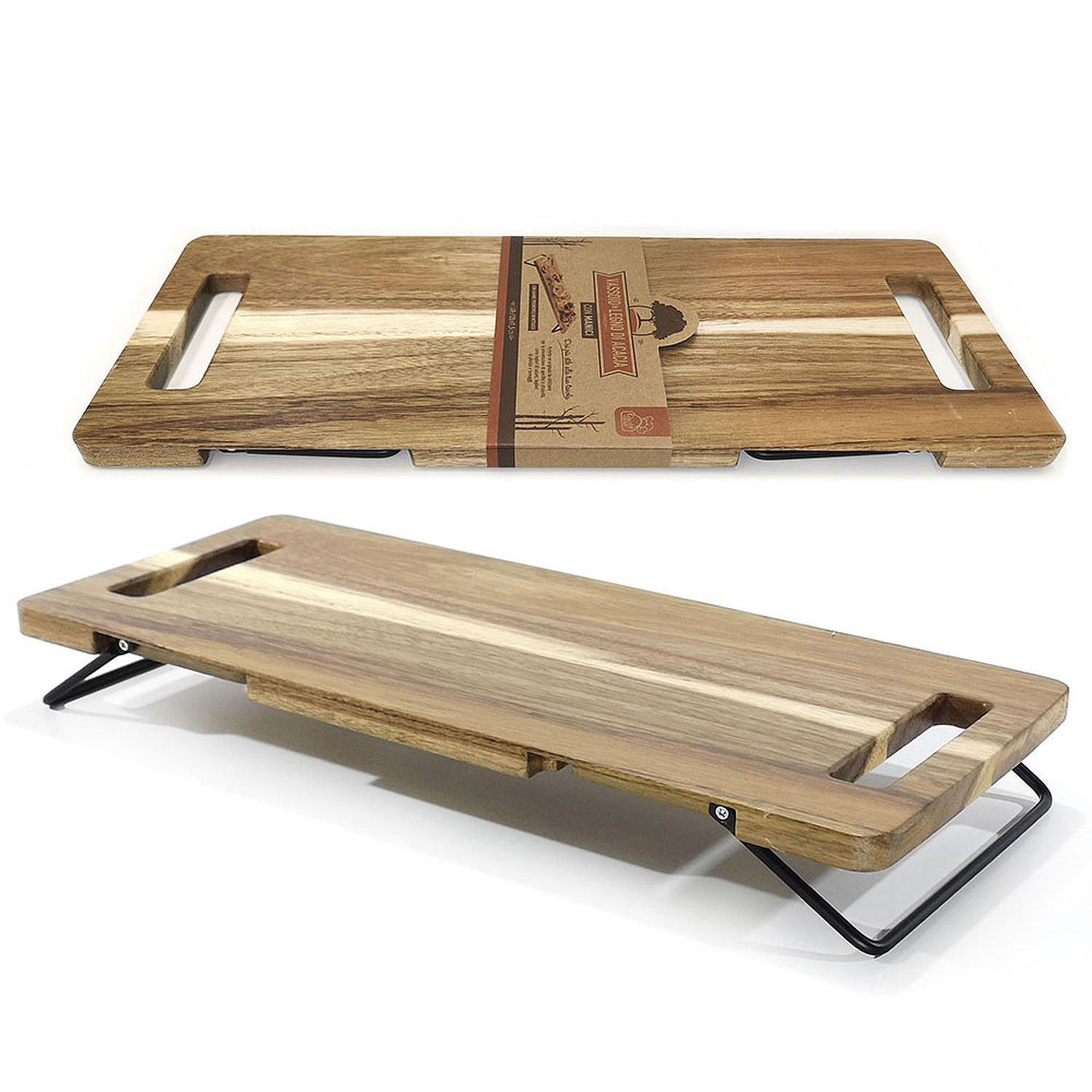 Δίσκος σερβιρίσματος με λαβές και πτυσσόμενα πόδια φυσικό ξύλο ακακίας 49x20cm.