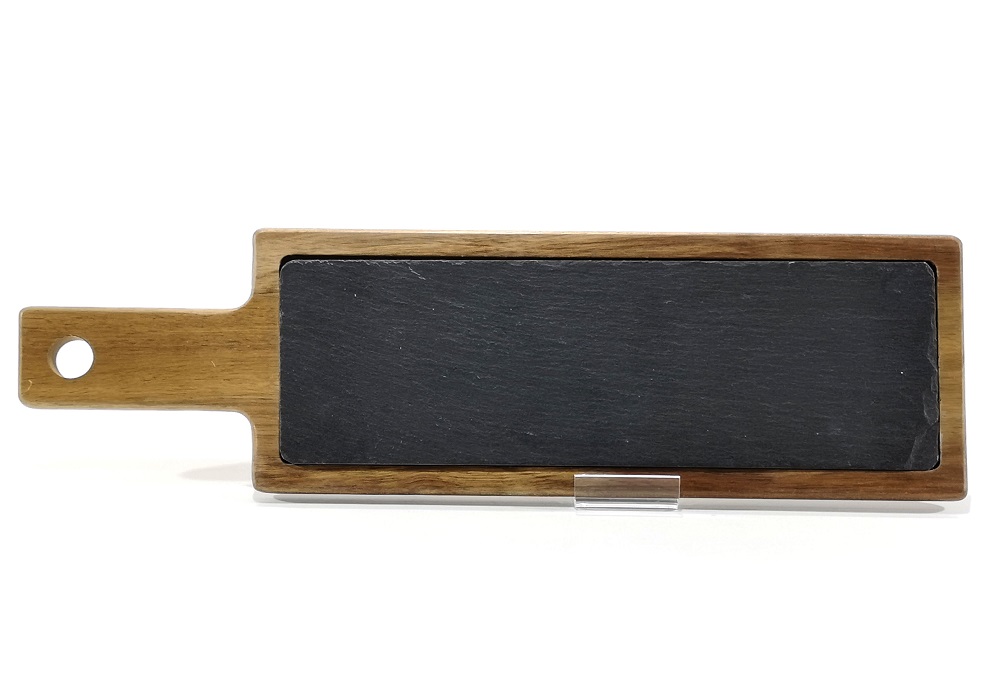 Δίσκος σερβιρίσματος με λαβή φυσικό/μαύρο μπαμπού/πέτρα 45x13x1.5cm.