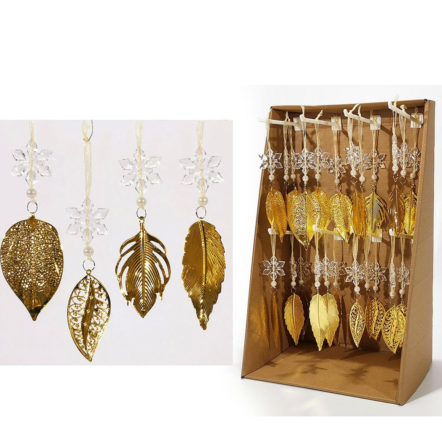 Διακοσμητικό κρεμαστό φύλλο χρύσο με νιφάδα 16cm σε 4 σχέδια.