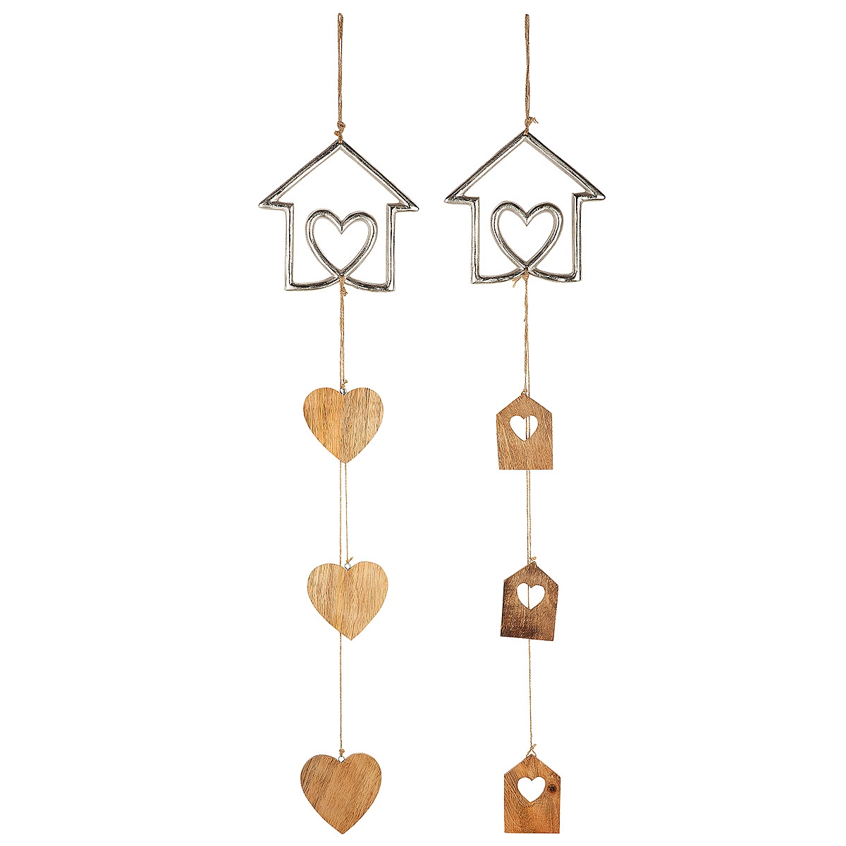 Διακοσμητικό κρεμαστό σπιτάκι ασημί/φυσικό αλουμίνιο/ξύλο 1×12.5x90cm σε 2 σχέδια.