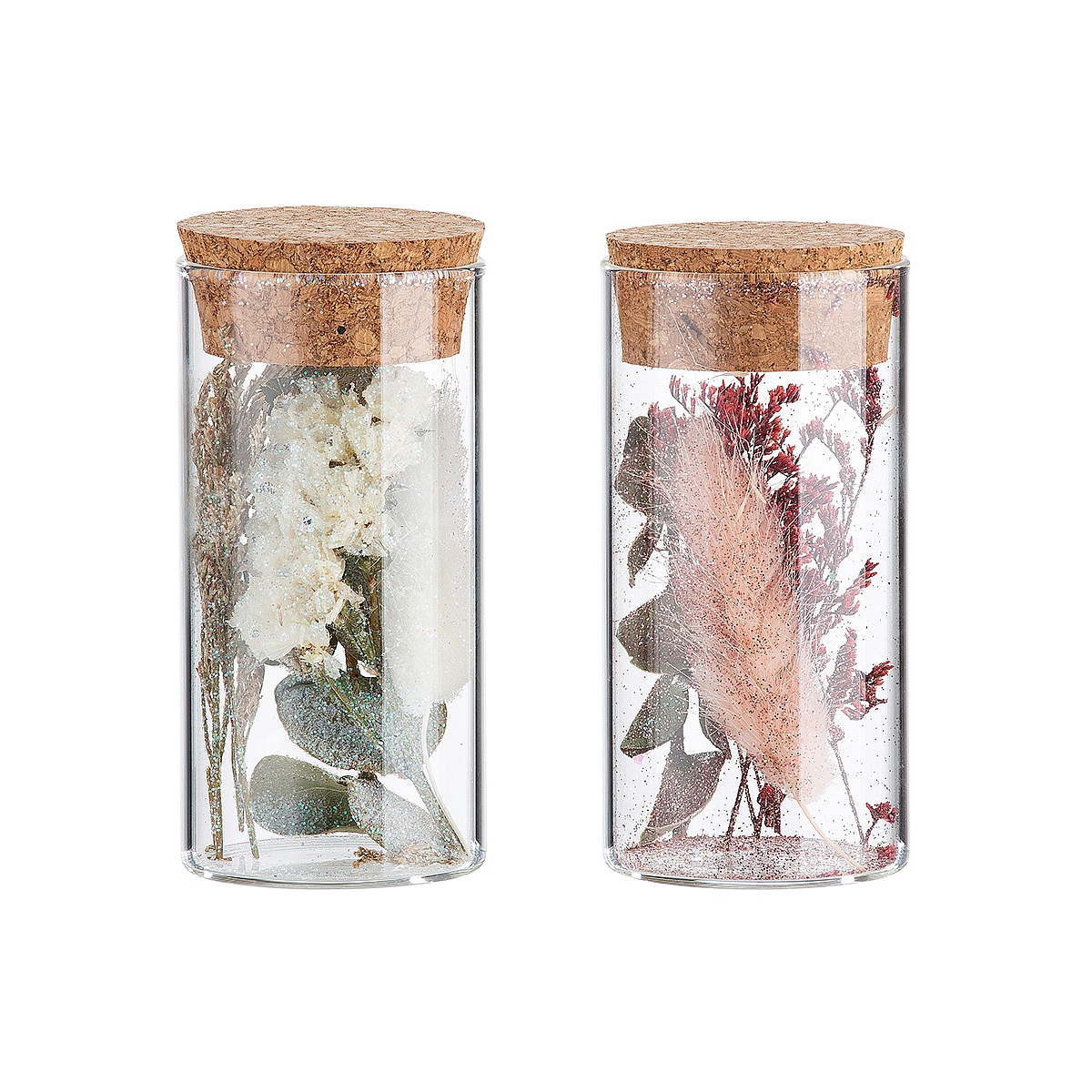 Διακοσμητικό αποξηραμένο λουλούδι σε δοχείο με glitter διάφανο γυαλί 10cm σε 2 σχέδια.