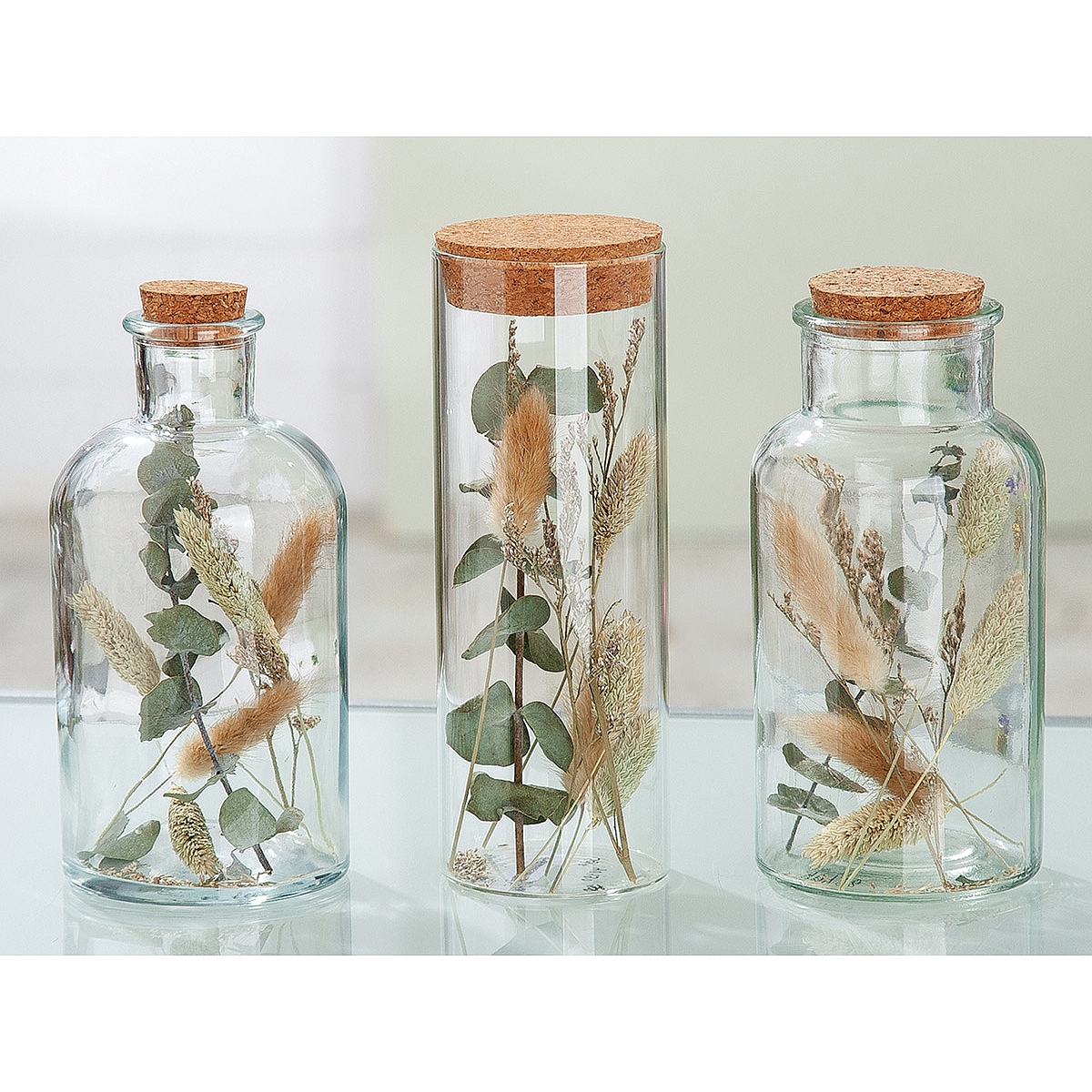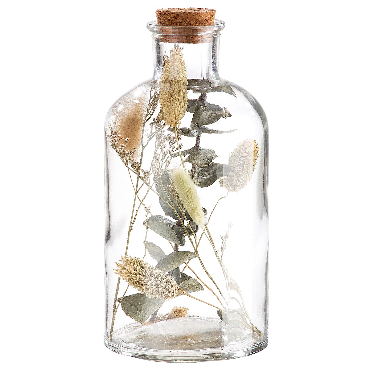 Διακοσμητικό αποξηραμένο λουλούδια σε δοχείο διάφανο γυαλί 8x17cm.