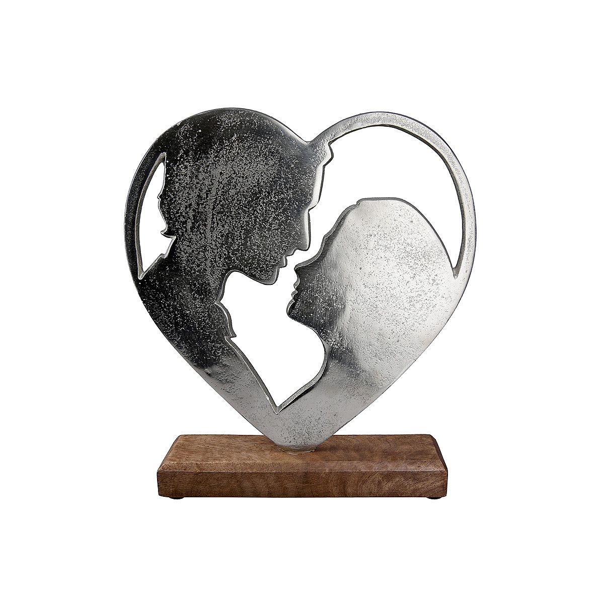 Διακοσμητικό ερωτευμένοι σε βάση ασημί/φυσικό αλουμίνιο/ξύλο 5x16x19cm.