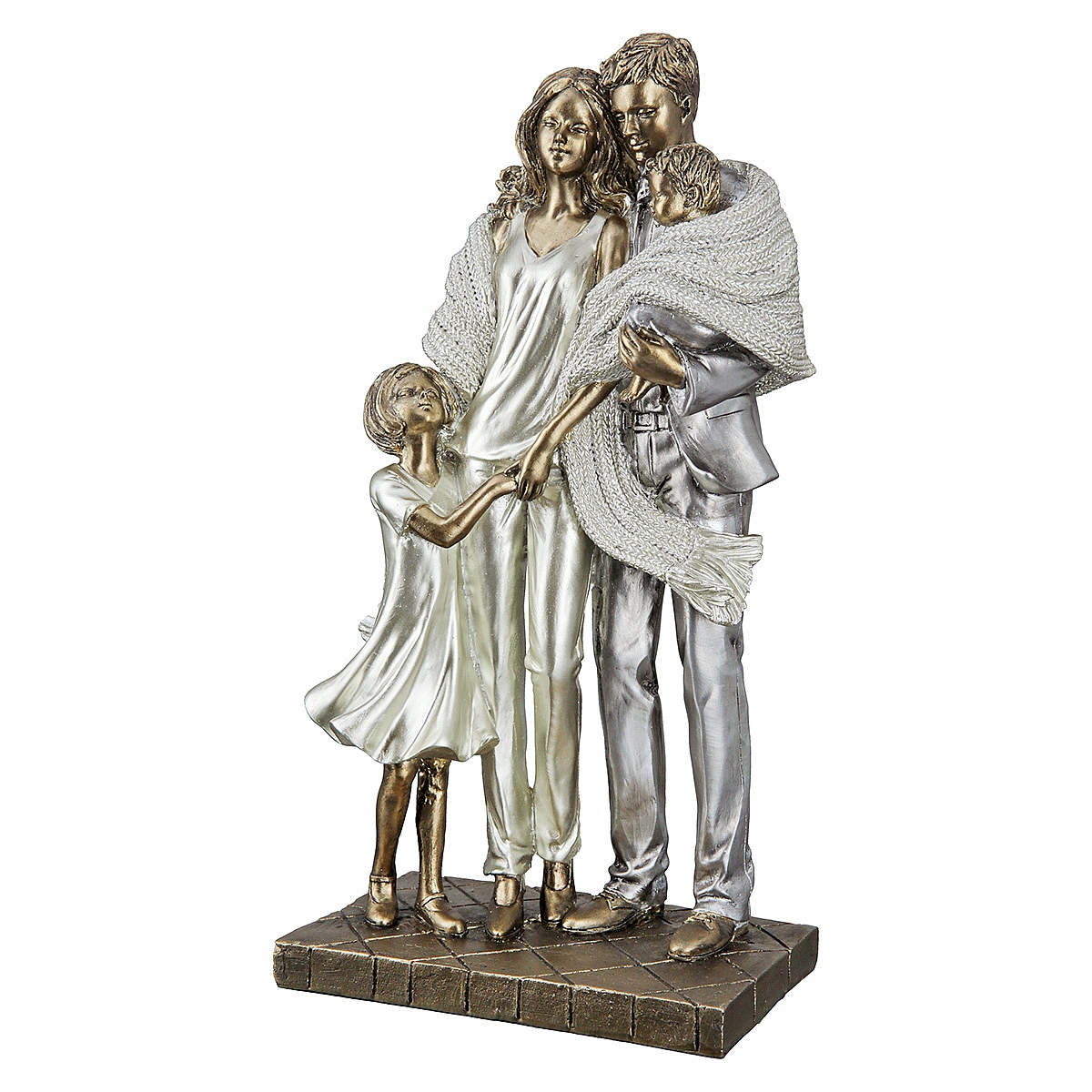 Διακοσμητικό οικογένεια ασημί/λευκό polyresin 8x15x26cm.