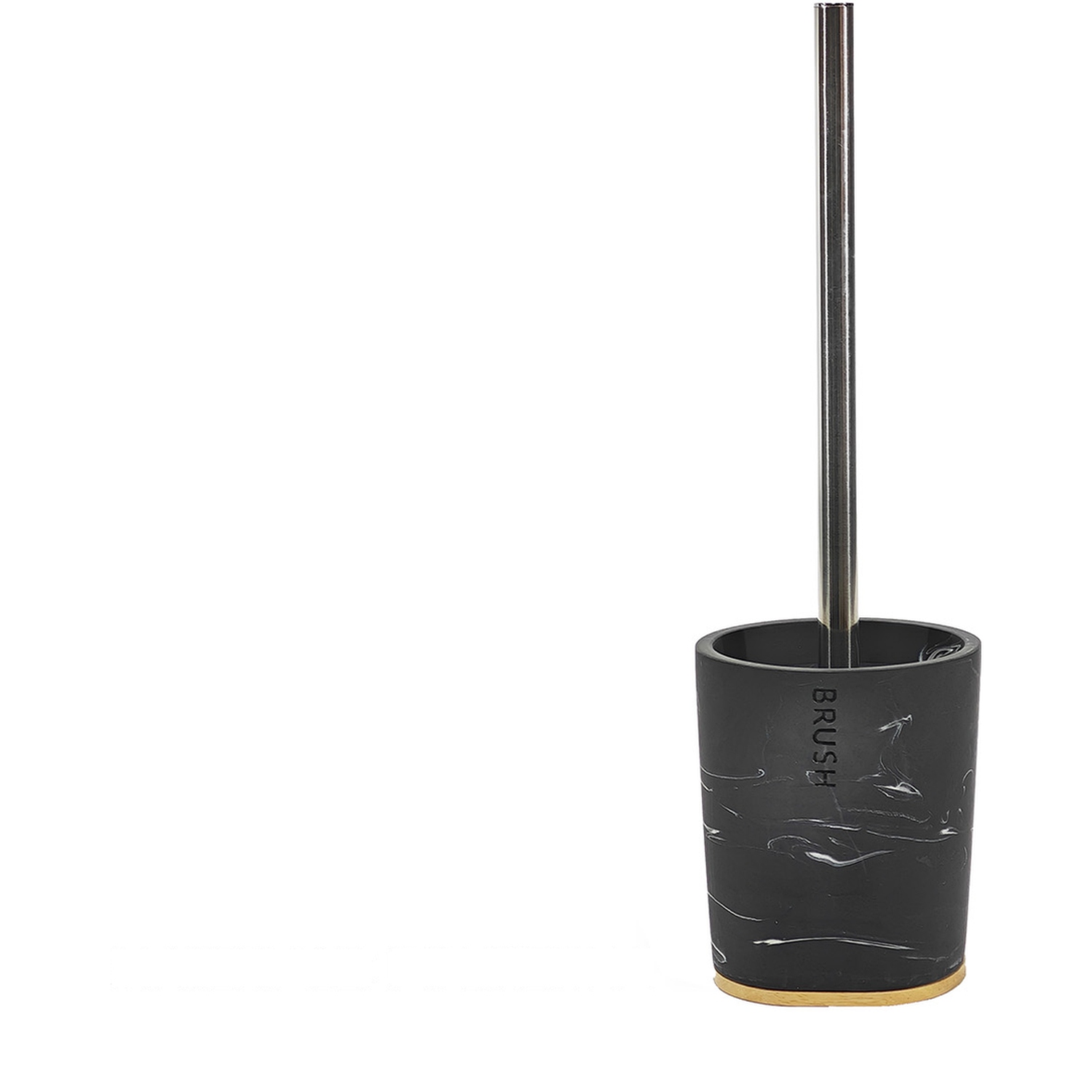 Η θήκη βούρτσας τουαλέτας με εφέ μαρμάρου σε μαύρο χρώμα, κατασκευασμένη από πολυρεζίνη, προσφέρει κομψότητα και αντοχή στο μπάνιο σας.