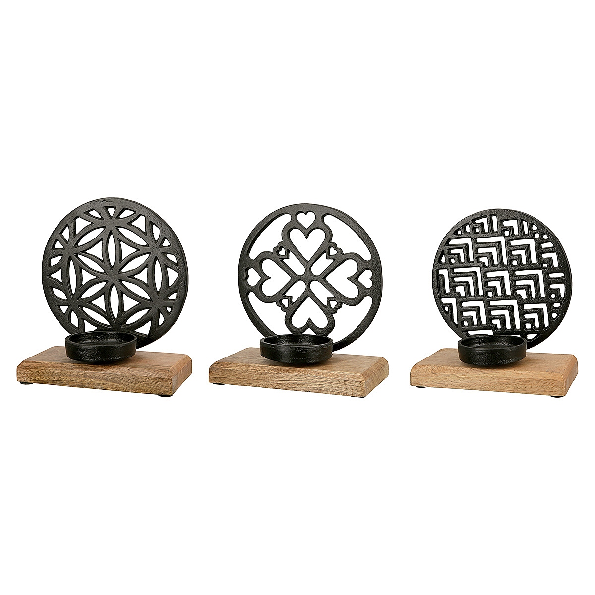 Θήκη ρεσώ με διακοσμητικό κύκλο σε βάση μαύρο/φυσικό αλουμίνιο/ξύλο 10x18x20cm σε 3 σχέδια.