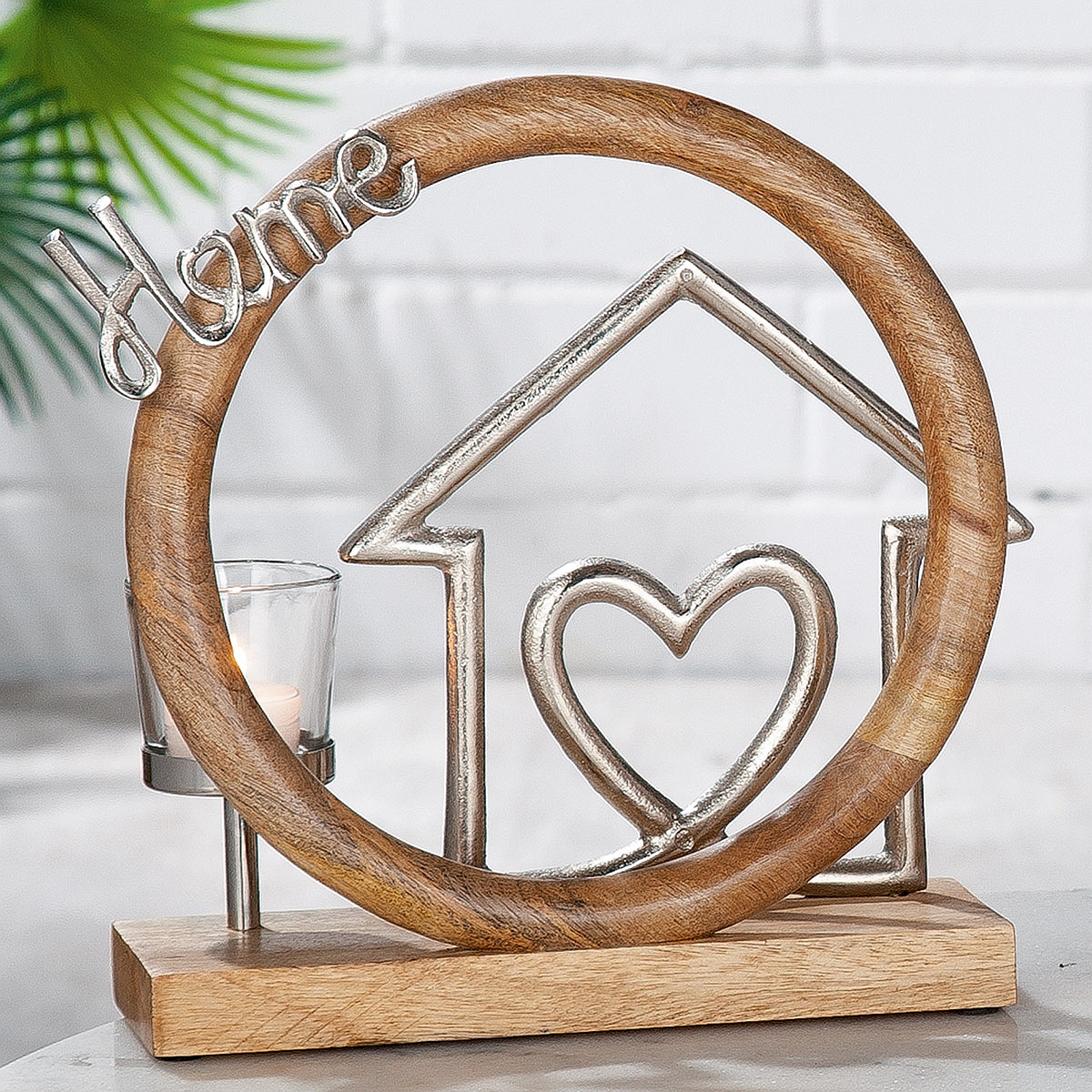 Θήκη ρεσώ ‘Home’ σπίτι σε κύκλο φυσικό/ασημί ξύλο/αλουμίνιο 9x27cm.