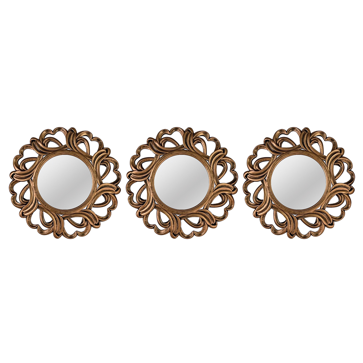 Καθρέπτης Τοίχου ArteLibre Καφέ Πλαστικό Φ25.4×3.2cm Σετ 3Τμχ