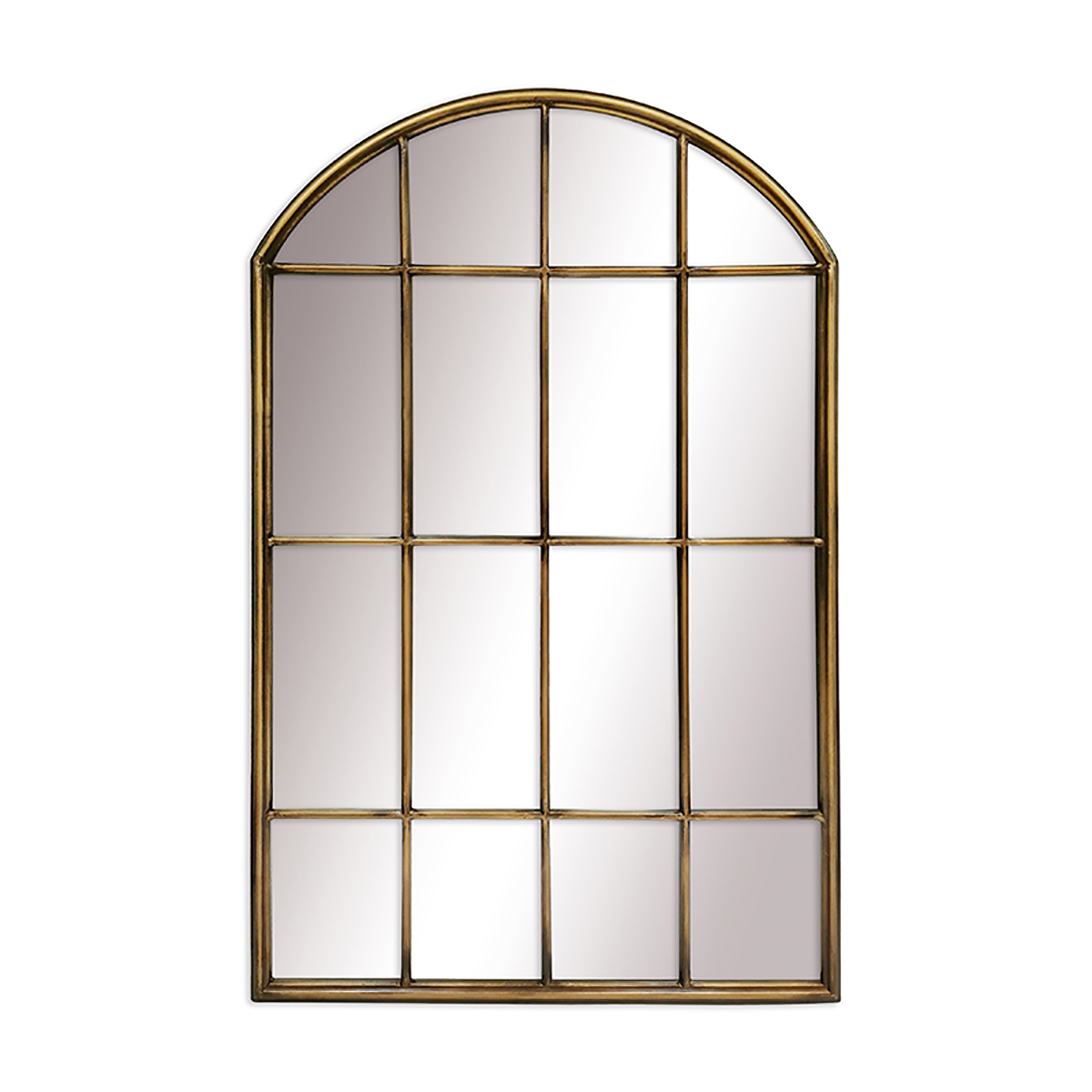 Καθρέπτης τοίχου μεταλλικός σε σχήμα παραθύρου σε απόχρωση του χρυσού.