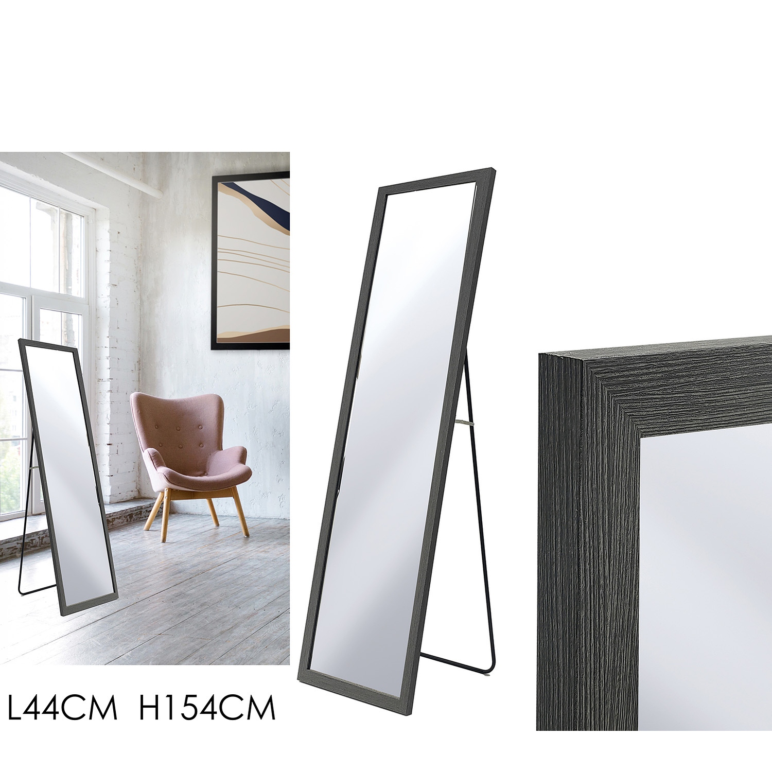 Κομψός καθρέφτης δαπέδου με πλαίσιο σε σκούρο χρώμα ξύλου. Ιδανικός για κάθε μοντέρνα διακόσμηση εσωτερικού χώρου.