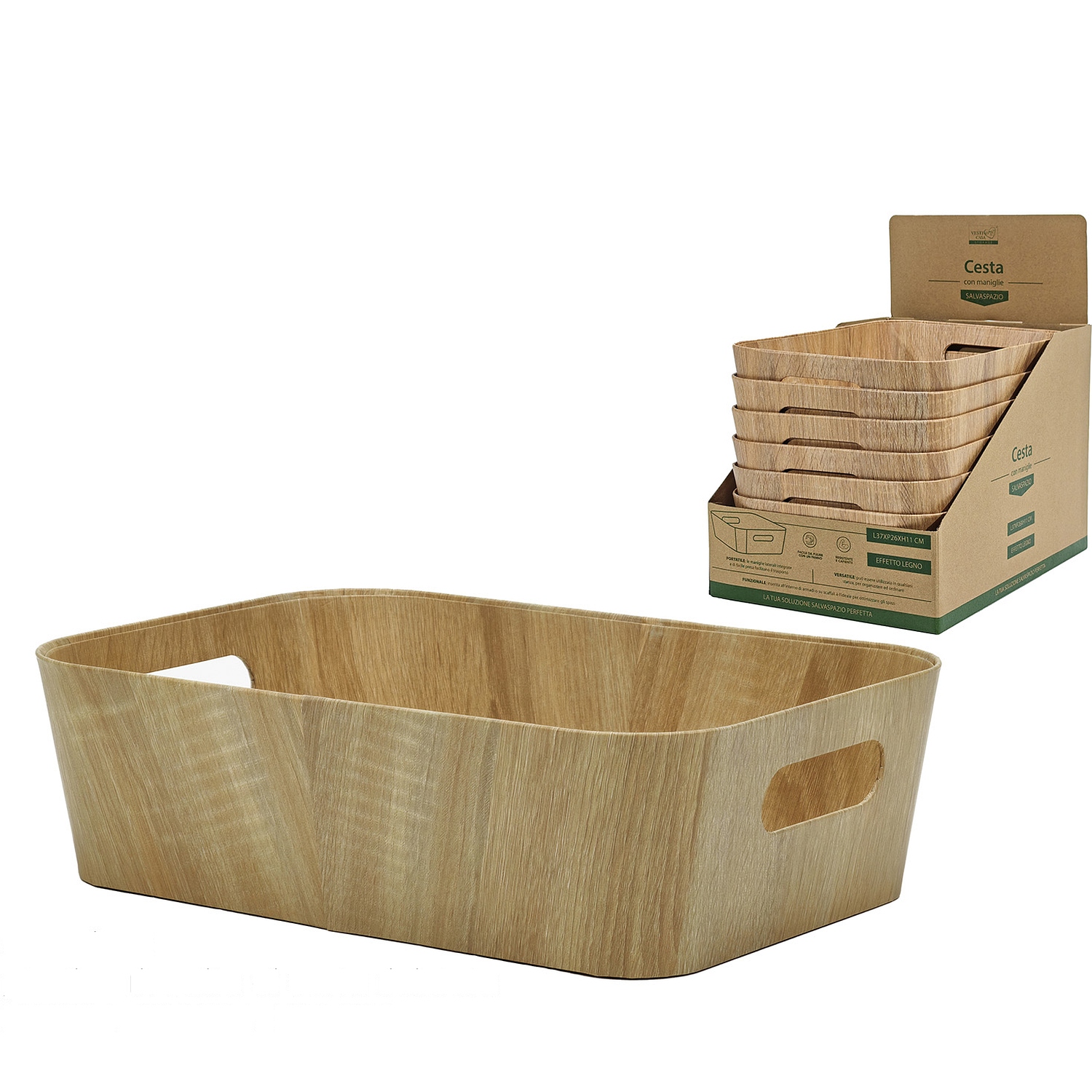 Αυτό το κομψό καλάθι συνδυάζει την αντοχή του πλαστικού με την αισθητική του φυσικού ξύλου. Ιδανική λύση για οργάνωση σε οποιοδήποτε χώρο.