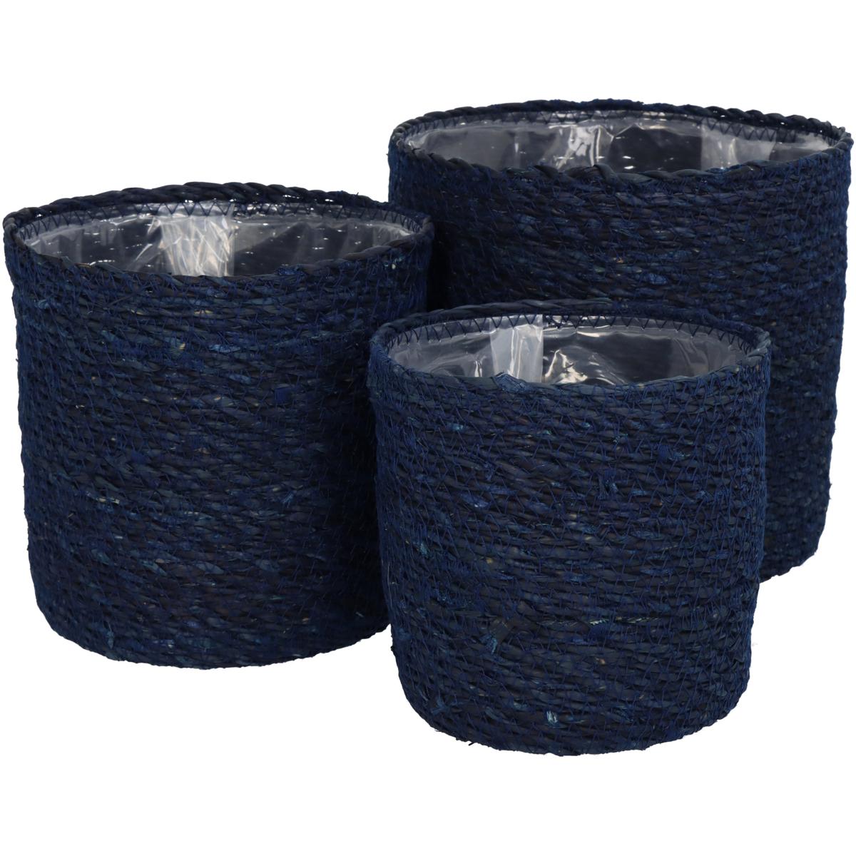 Καλάθι μπλε seagrass 20x20x18cm σετ 3τμχ.