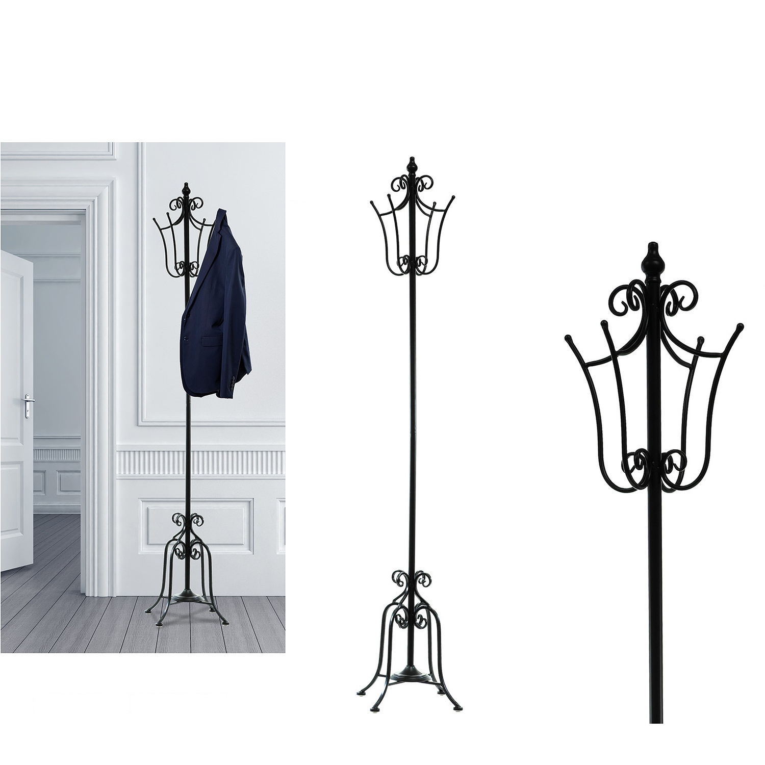 Καλόγερος μαύρου χρώματος από μέταλλο με ύψος 180cm. Ιδανικός για την οργάνωση και αποθήκευση ρούχων σε κάθε χώρο.