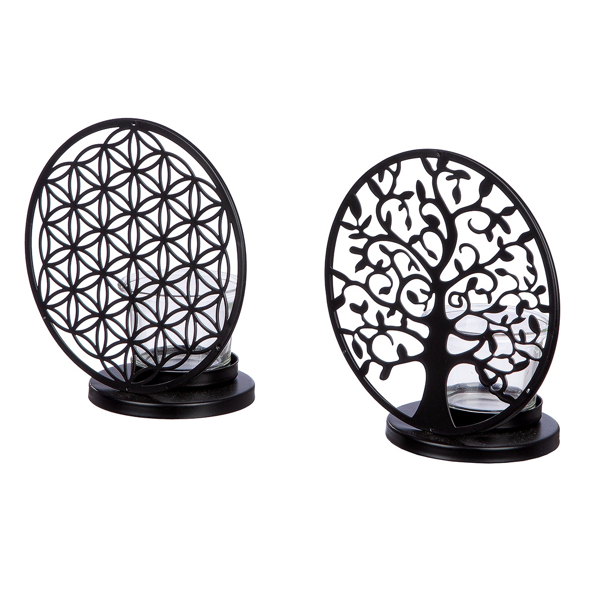 Θήκη ρεσώ μοτίβο δέντρο/λουλούδι της ζωής μαύρο μέταλλο/γυαλί σε 2 σχέδια.