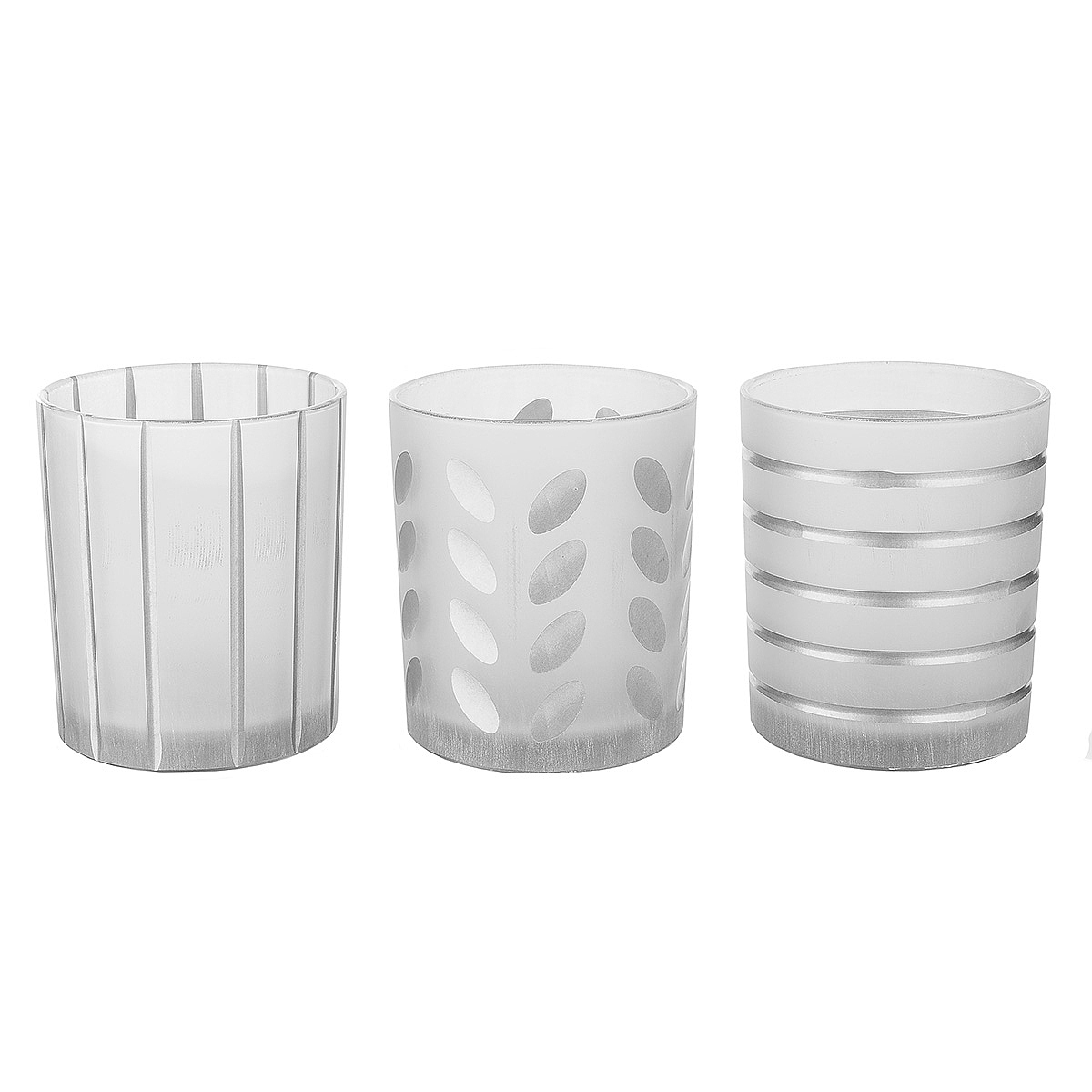 Κηροπήγιο διάφανο γυαλί 9cm σε 3 σχέδια.