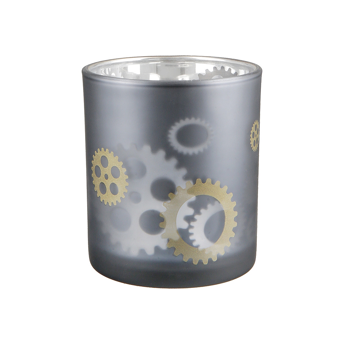 Κηροπήγιο με διακόσμηση γρανάζια γκρι γυαλί Φ7x8cm.