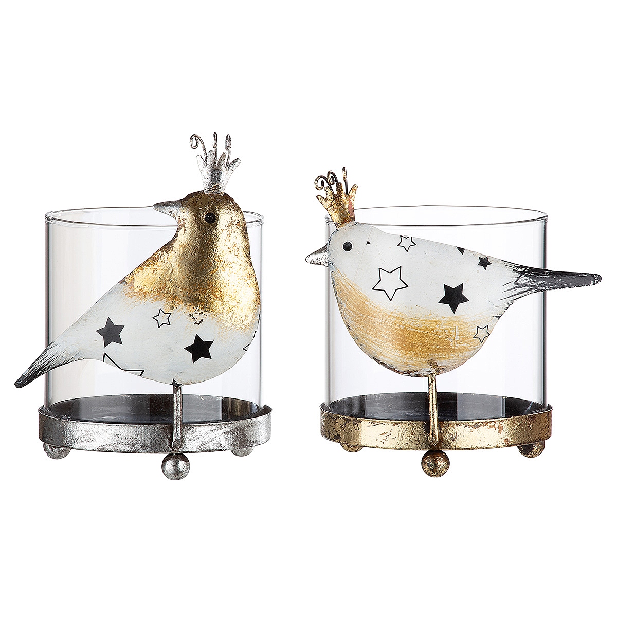 Κηροπήγιο με διακόσμηση πουλί μέταλλο/γυαλί 9×10.5x11cm σε 2 χρώματα.