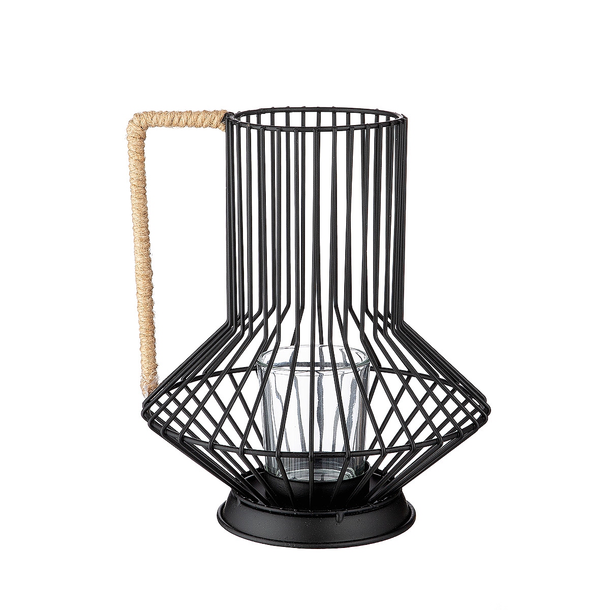 Κηροπήγιο με χερούλι μαύρο/φυσικό μέταλλο 19.5cm.