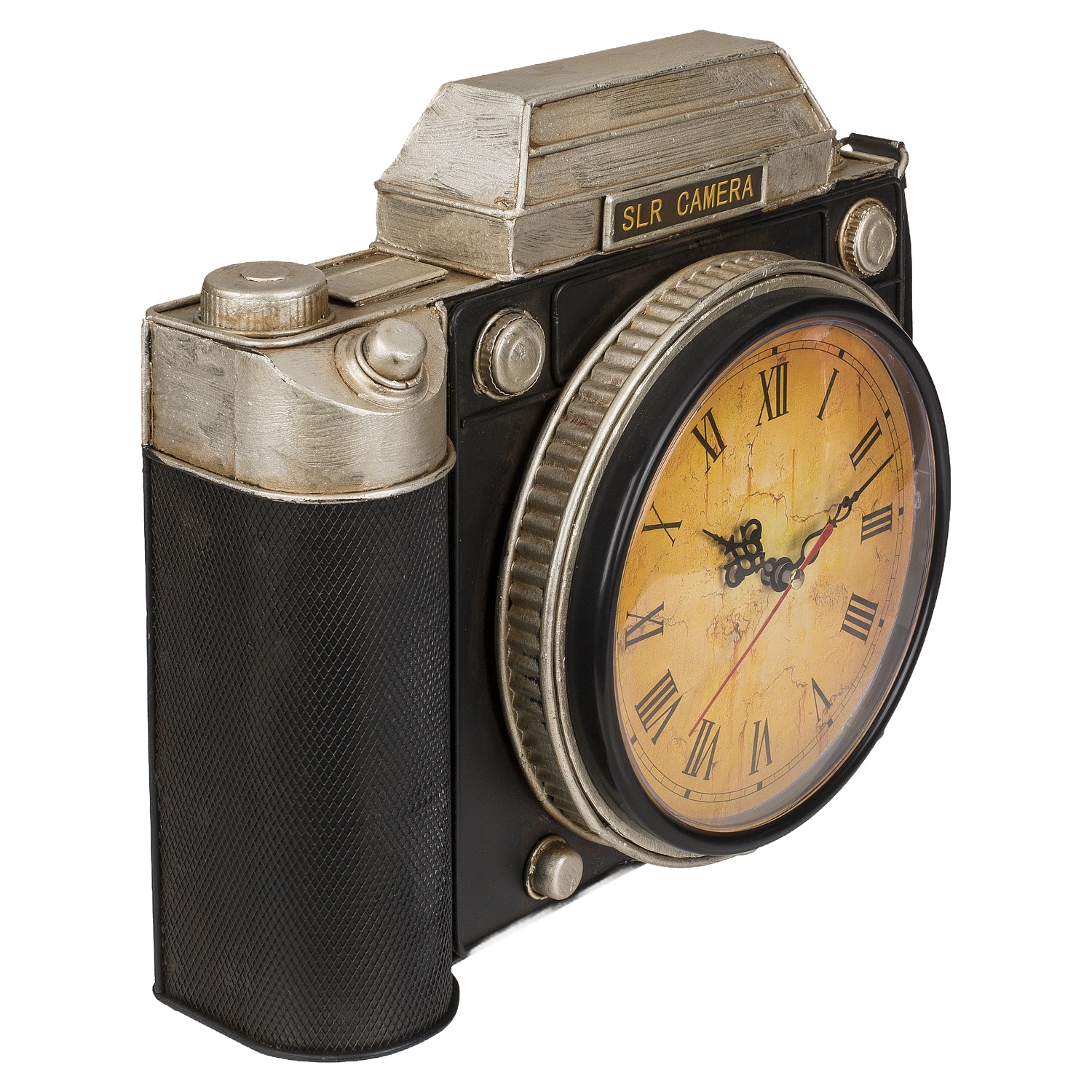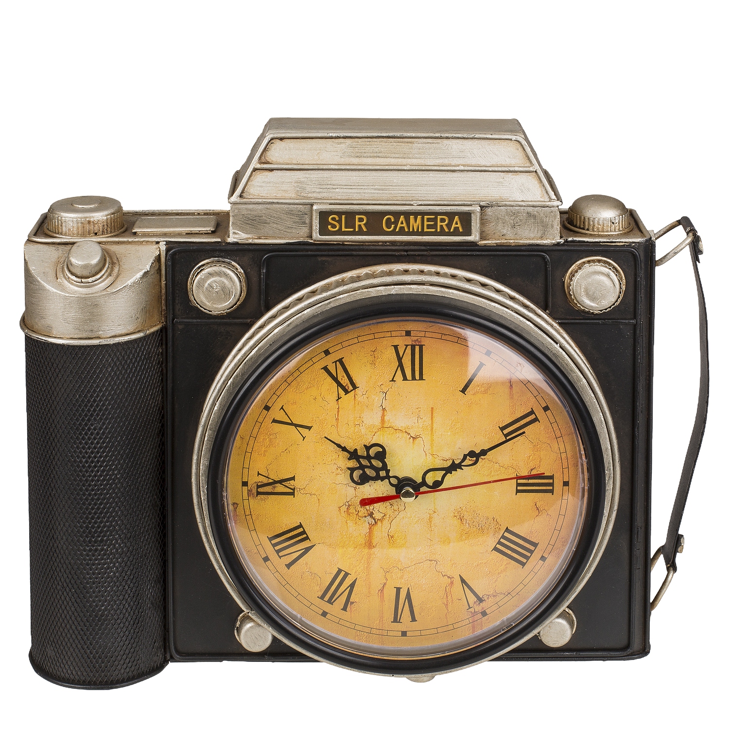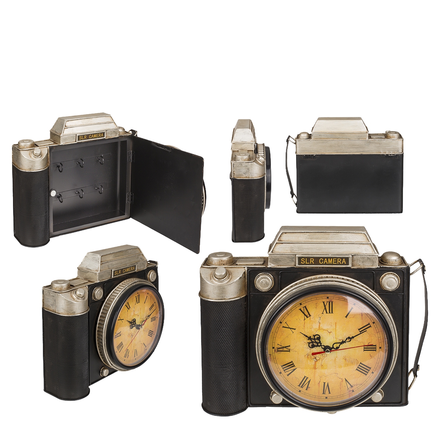 Κλειδοθήκη φωτογραφική μηχανή 6 θέσεων με ρολόι μπρονζέ/μαύρο μέταλλο 23×8.5x29cm.
