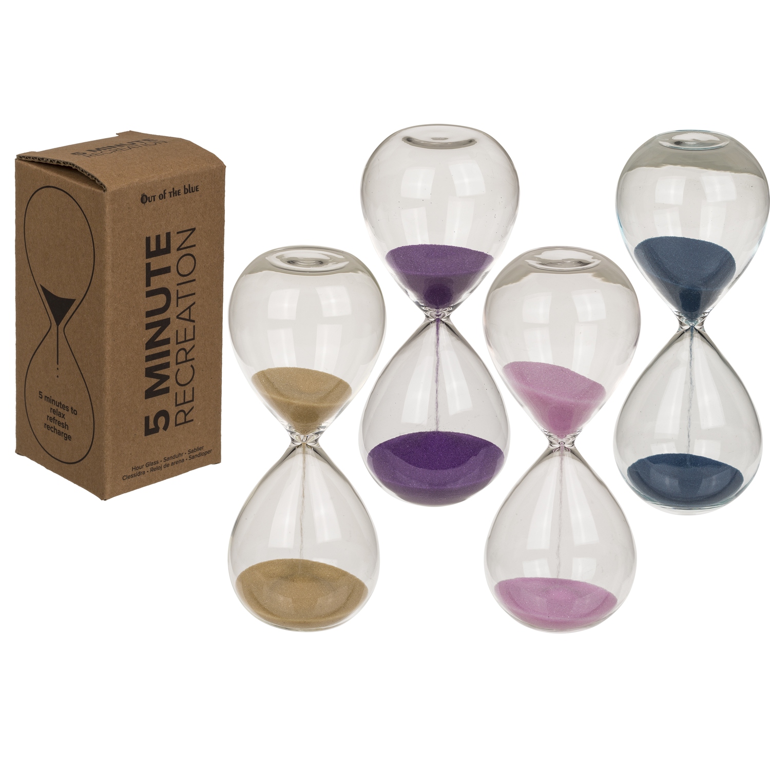 Κλεψύδρα 5 λεπτών διάφανο γυαλί Φ5×12.5cm σε 4 χρώματα άμμου.