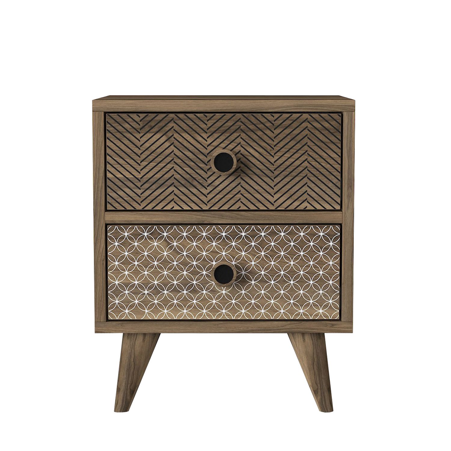 Κομοδίνο KALYMNOS καρυδί με σχέδιο 40x30x48cm.