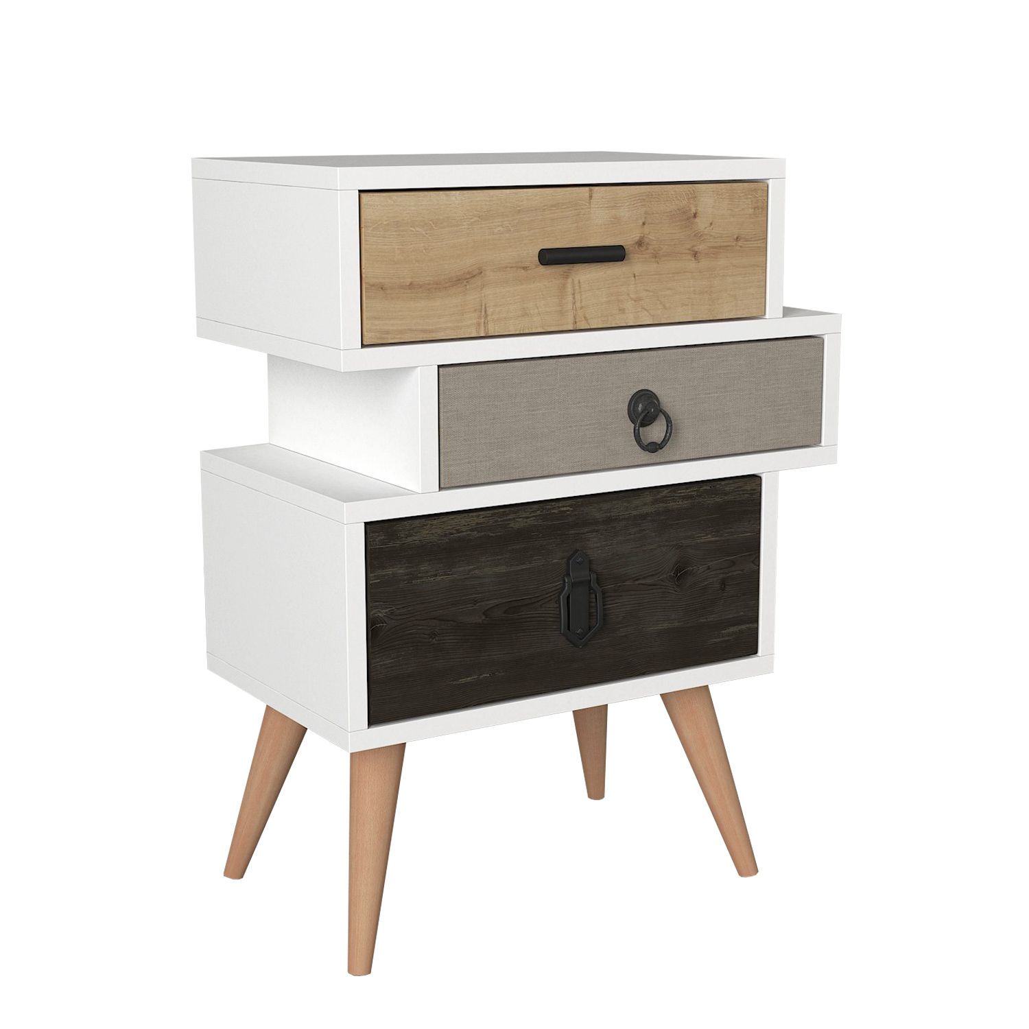 Κομοδίνο KIMOLOS λευκό/φυσικό/καφέ 52x30x68cm.