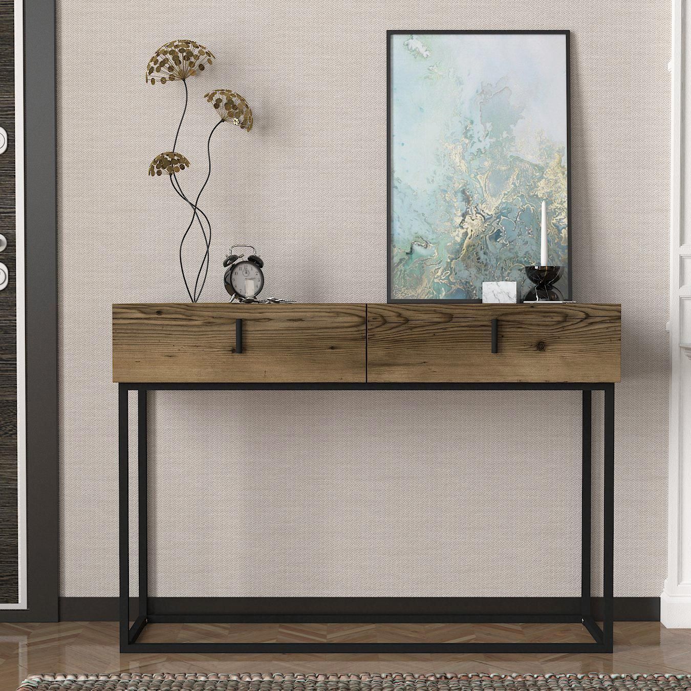 Κονσόλα Mykonos καφέ/μαύρη βάση μοριοσανίδα/μελαμίνη/μέταλλο 120x37x84cm.