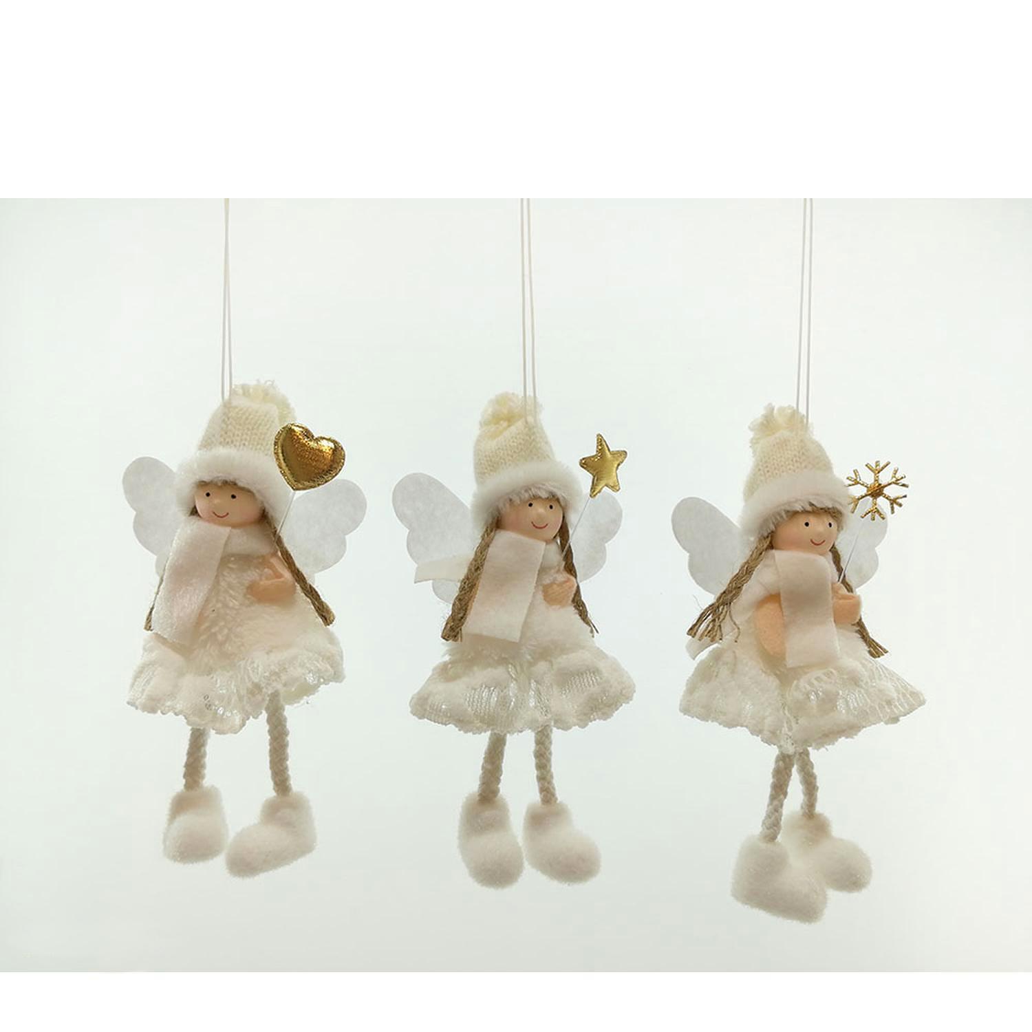 Κορίτσι άγγελος κρεμαστό λευκό/χρυσό λούτρινο 17cm σε 3 σχέδια