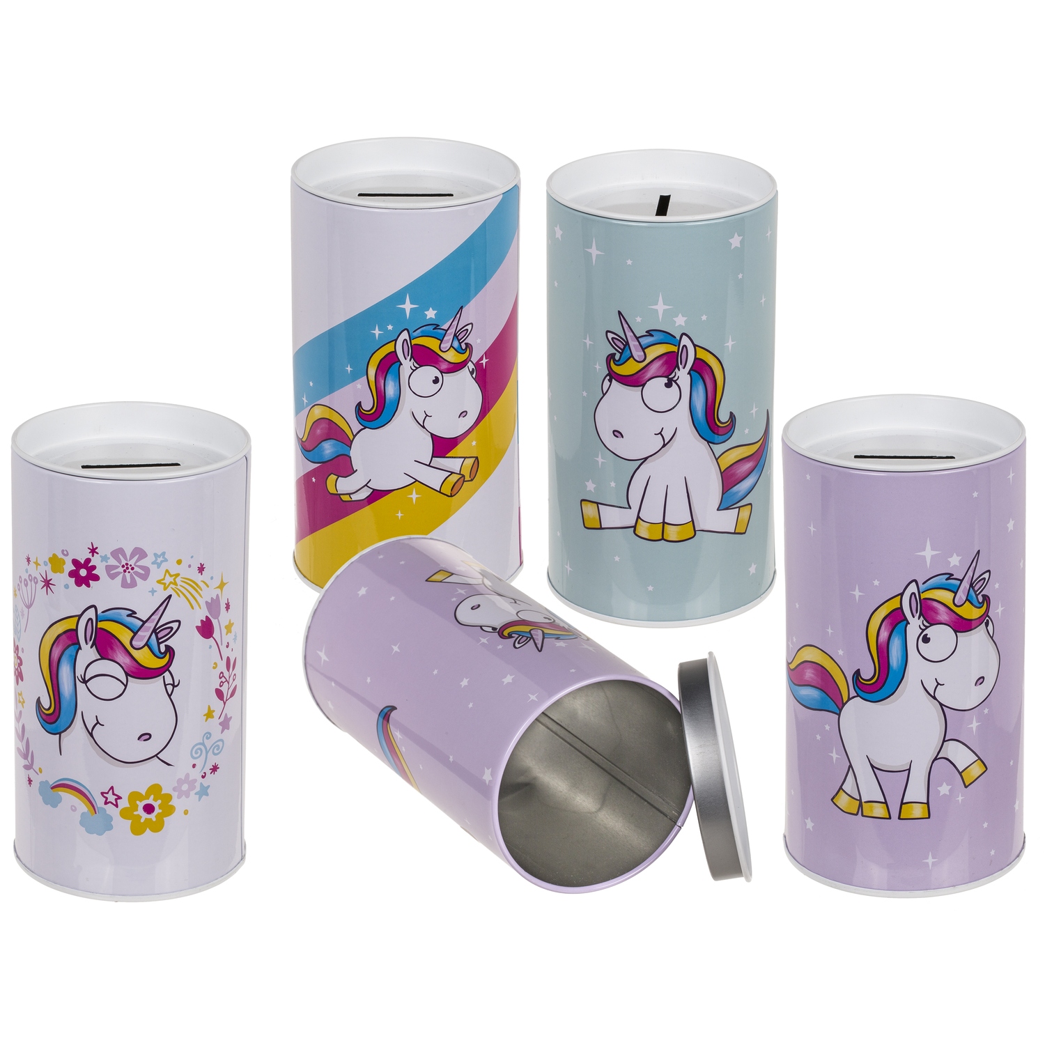 Κουμπαράς μονόκερως με αποσπώμενο καπάκι μέταλλο 15.5x8cm σε 4 σχέδια.