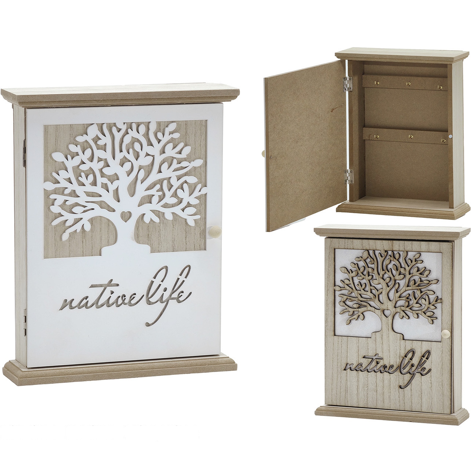 Κομψό κουτί κλειδοθήκης με φυσικό και λευκό φινίρισμα, κατασκευασμένο από MDF. Ιδανικό για την οργάνωση των κλειδιών σας.