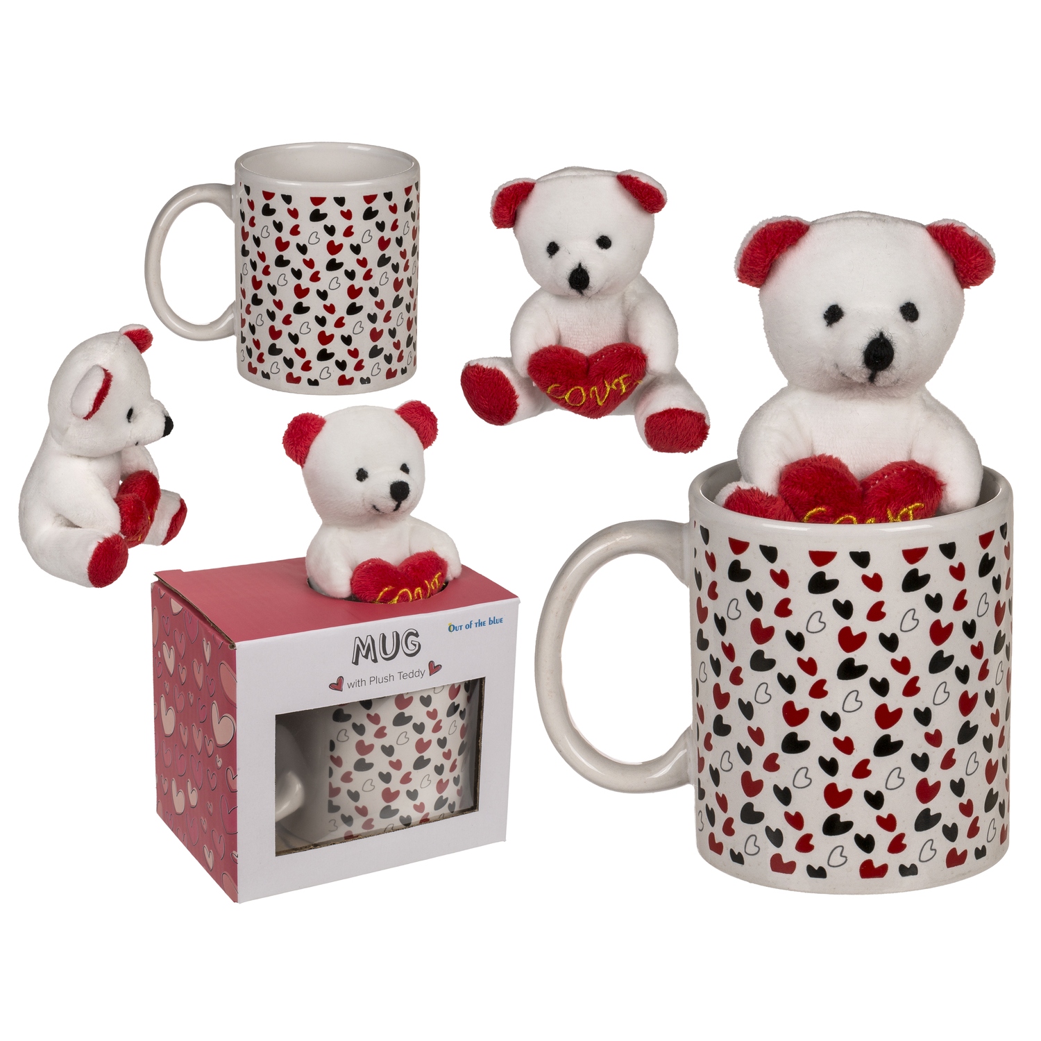 Κούπα 380ml σχέδιο μικρές κόκκινες καρδιές με αρκουδάκι λευκό κεραμικό 10x8cm.