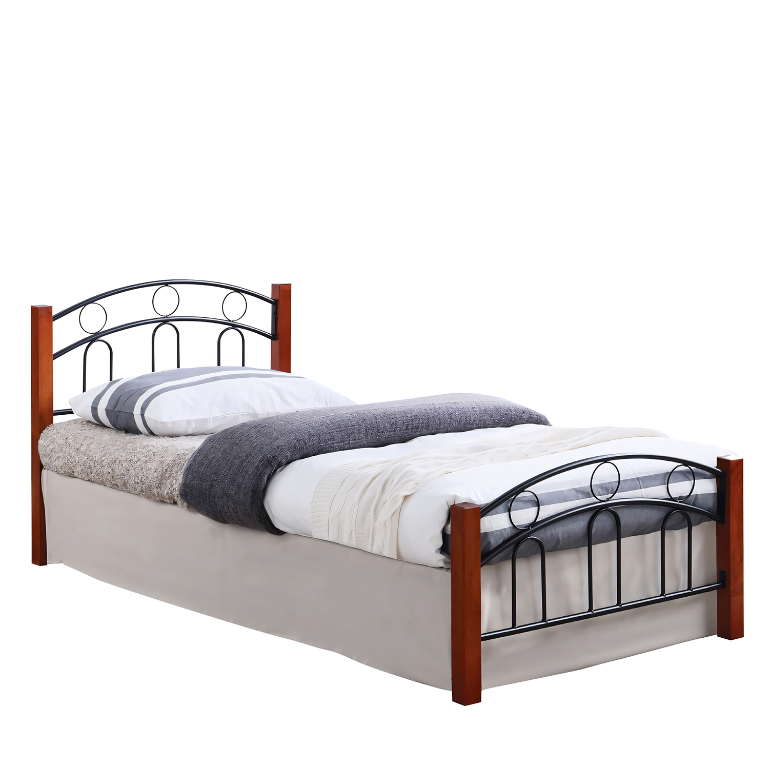 - Μεταλλικό κρεβάτι σε κλασικό σχέδιο με σταθερό και στιβαρό σκελετό ανθεκτικό στη φθορά του χρόνου και ξύλινα πόδια-κολώνες