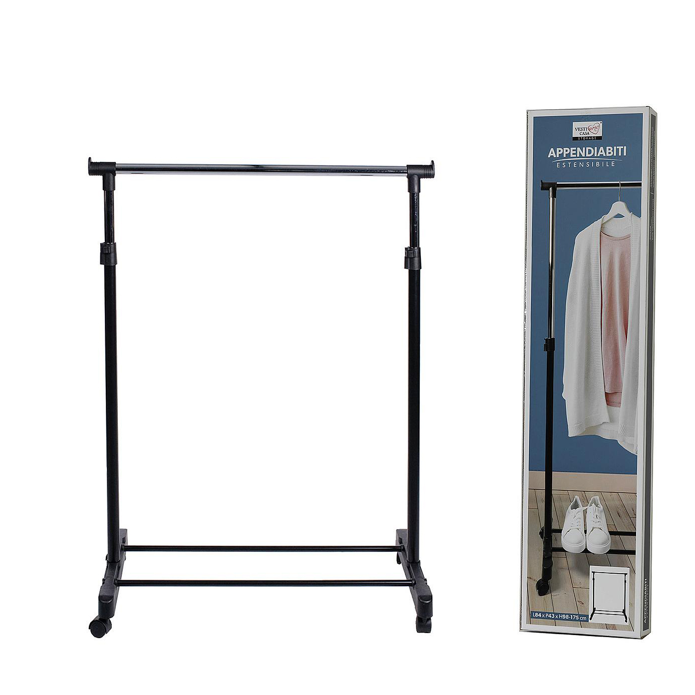 Κρεμάστρα δαπέδου πτυσσόμενη τροχήλατη μαύρο μέταλλο 84x43x98-175cm.