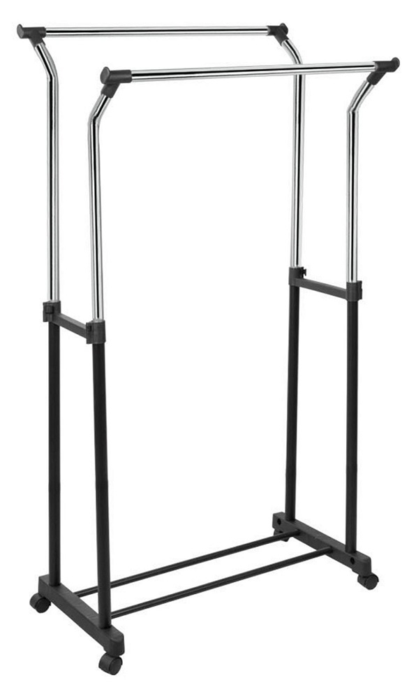 Κρεμάστρα ρούχων διπλή επεκτεινόμενη ασημί/μαύρο μέταλλο 88x43x106-170cm.